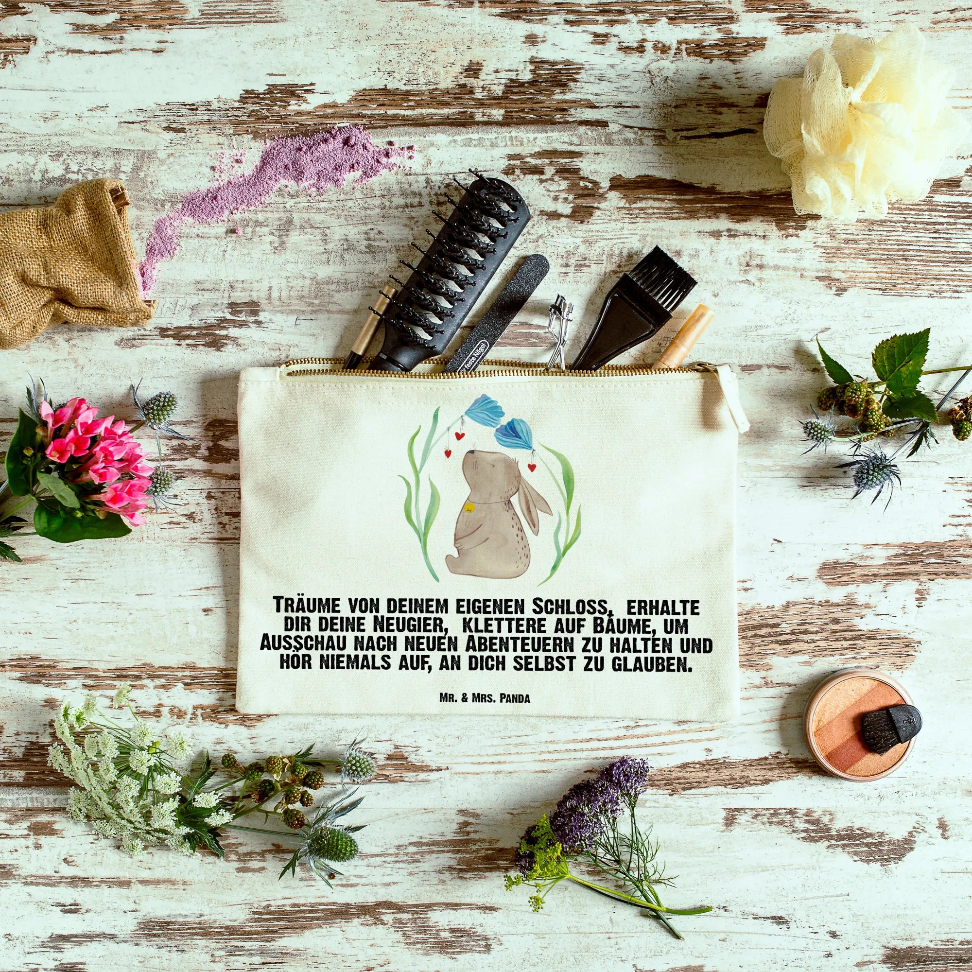 Make-up bag Hare flower - Size XL Large - with a saying