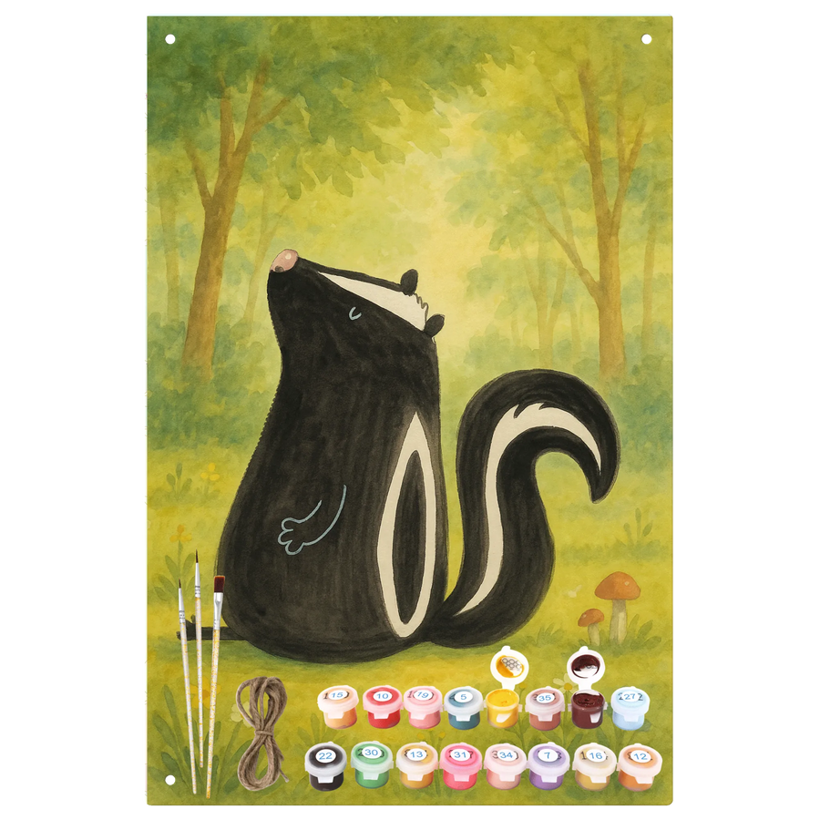 Malen nach Zahlen Metallschild Stinktier Sitzen Design