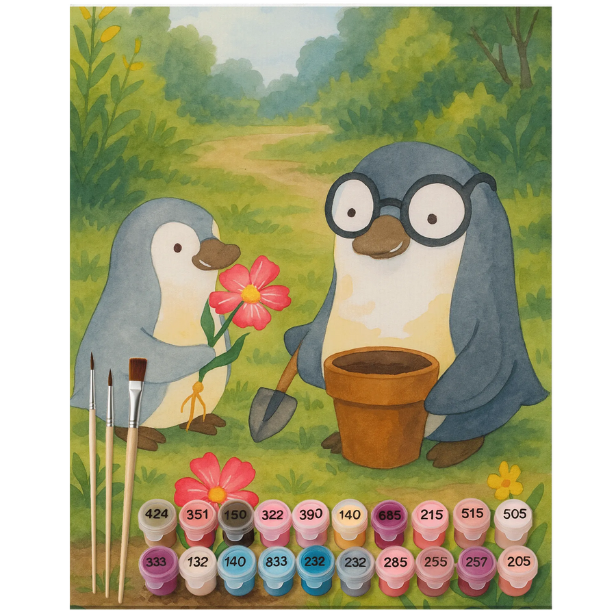 Malen nach Zahlen Pinguin Opa Blumen pflanzen Design - Ohne Rahmen - 24 Farben (Standard)
