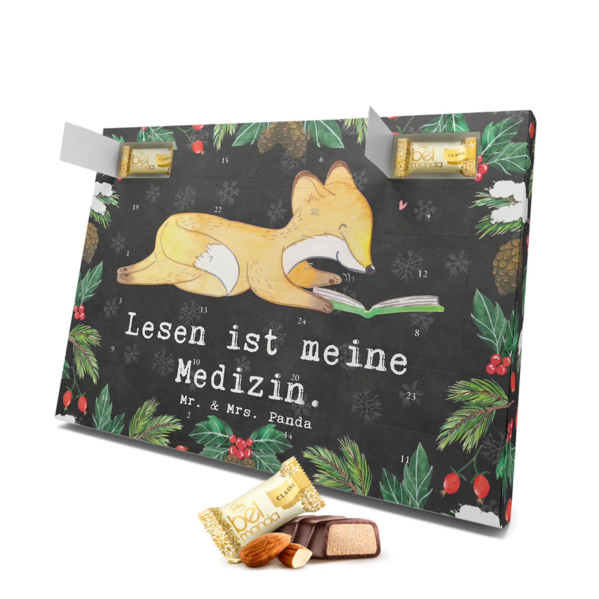 Der Marzipan Adventskalender Fuchs Lesen Medizin von Mr. & Mrs. Panda ist das perfekte Geschenk für alle Bücherliebhaber und Leseratten! In einer hektischen Welt, in der wir viel um uns herum haben, ist das Lesen eine wahre Oase der Ruhe.