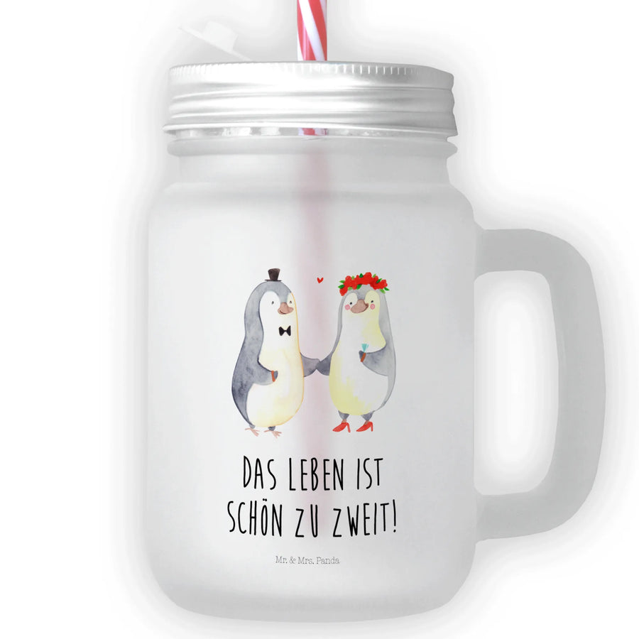 Mason jar drinking glass Penguins getting married – Mr. & Mrs. Panda