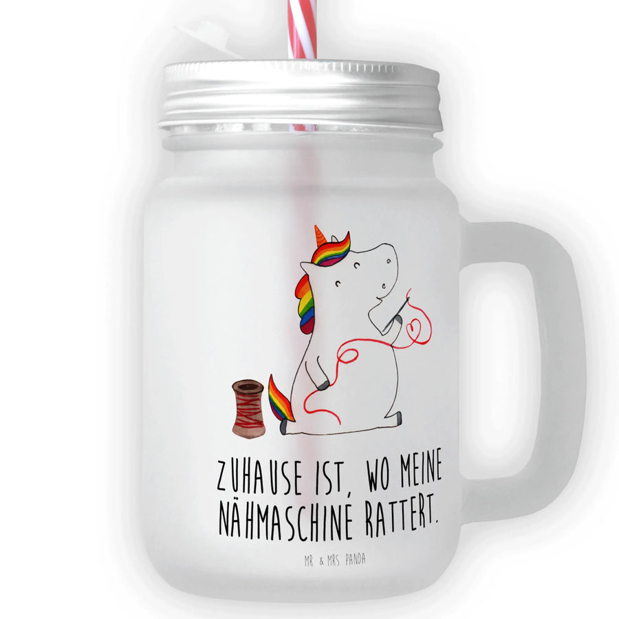 Mason jar drinking glass unicorn seamstress - with saying