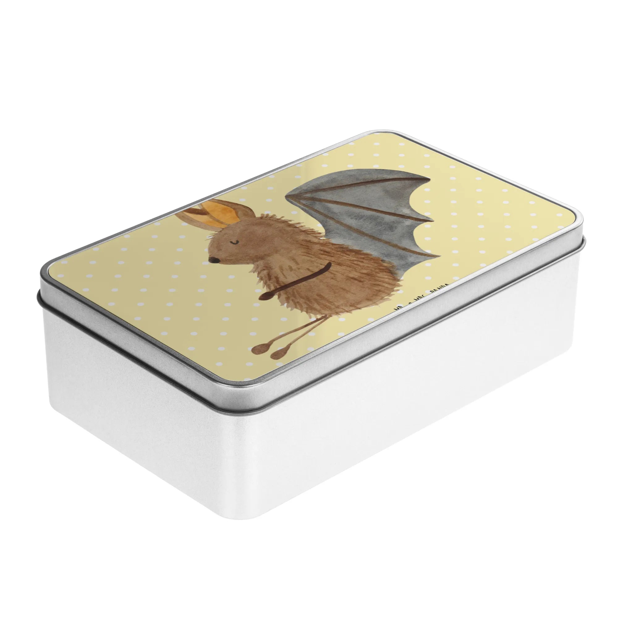 Introducing the delightful Metal Tin featuring our charming Sitting Bat motif from the beloved Small World collection by Mr. & Mrs. Panda! This adorable tin is not just a storage solution but a delightful accessory for any space. Measuring 187 mm by 125 mm and 36 mm tall, it's the perfect size for storing cookies, trinkets, or even crafting supplies.