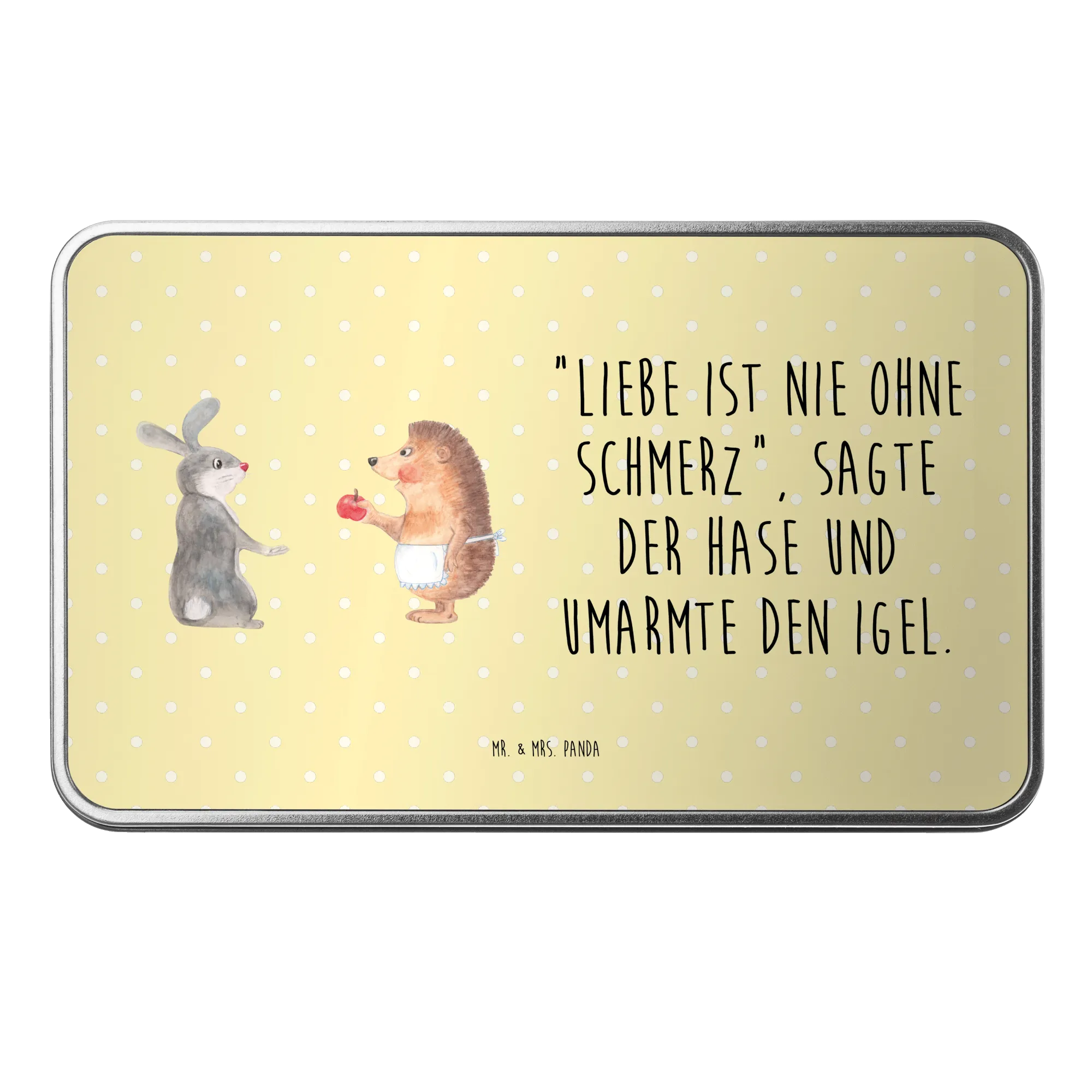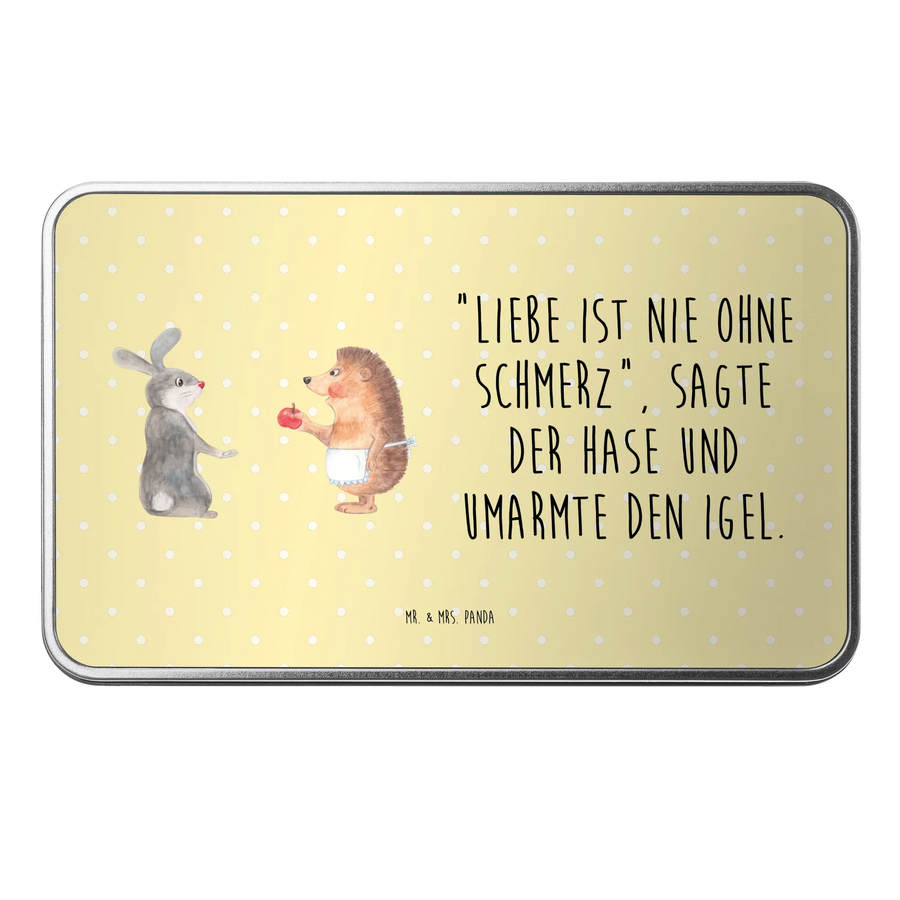Perfectly crafted for those who appreciate the nuances of love and its occasional heartaches, this metal box shines with a beautiful design showcasing a sweet rabbit embracing an adorable hedgehog. With the quote, "When it comes to love, there’s always a little pain involved," subtly captured within the illustration, it evokes emotions that resonate deeply with many.