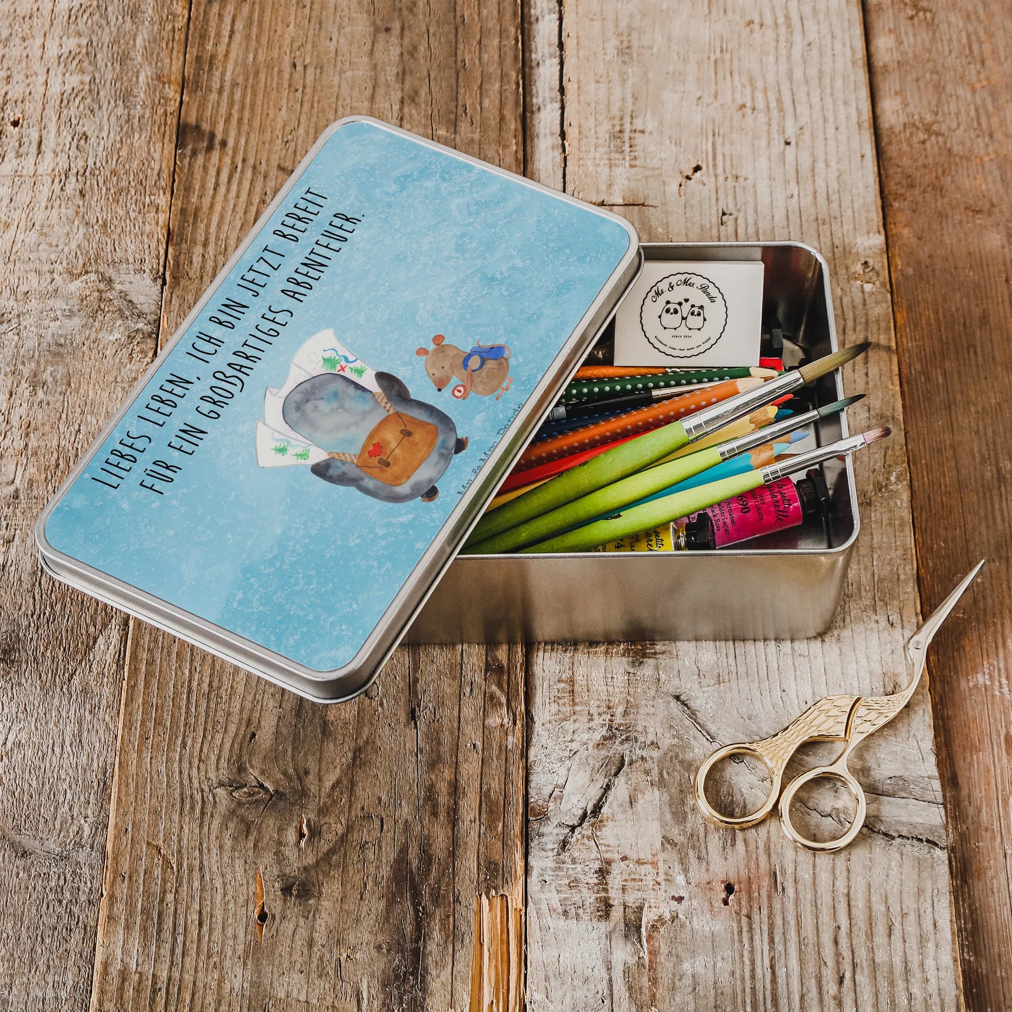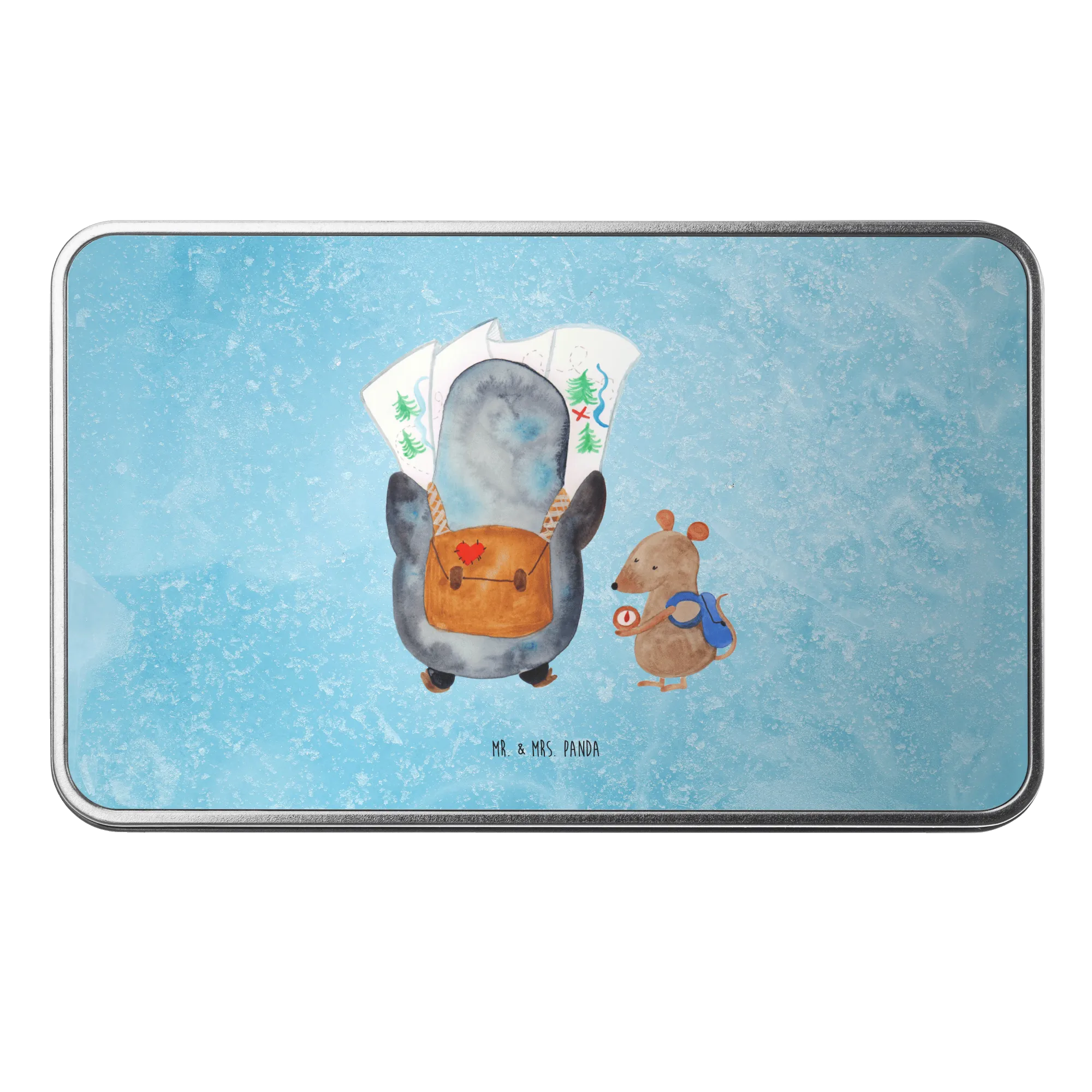 Introducing the delightful Metal Tin with the charming Penguin & Mouse Hiker motif, an enchanting addition from the Mr. & Mrs. Panda Penguin Collection! This beautifully crafted tin is not just a storage box; it's a gateway to adventure!