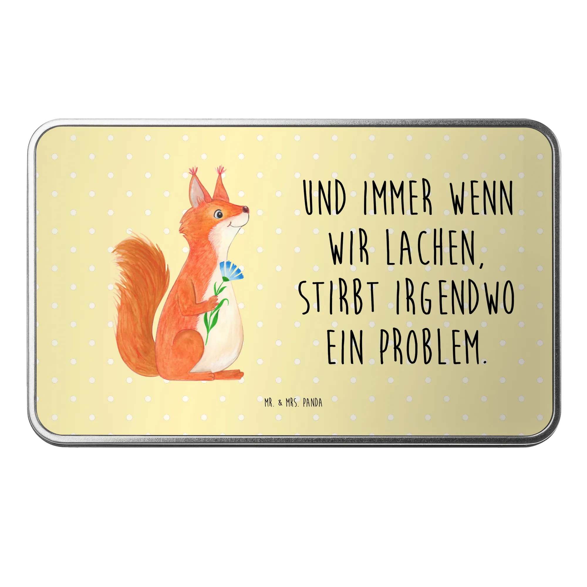 Metal tin Squirrel flower - with a saying