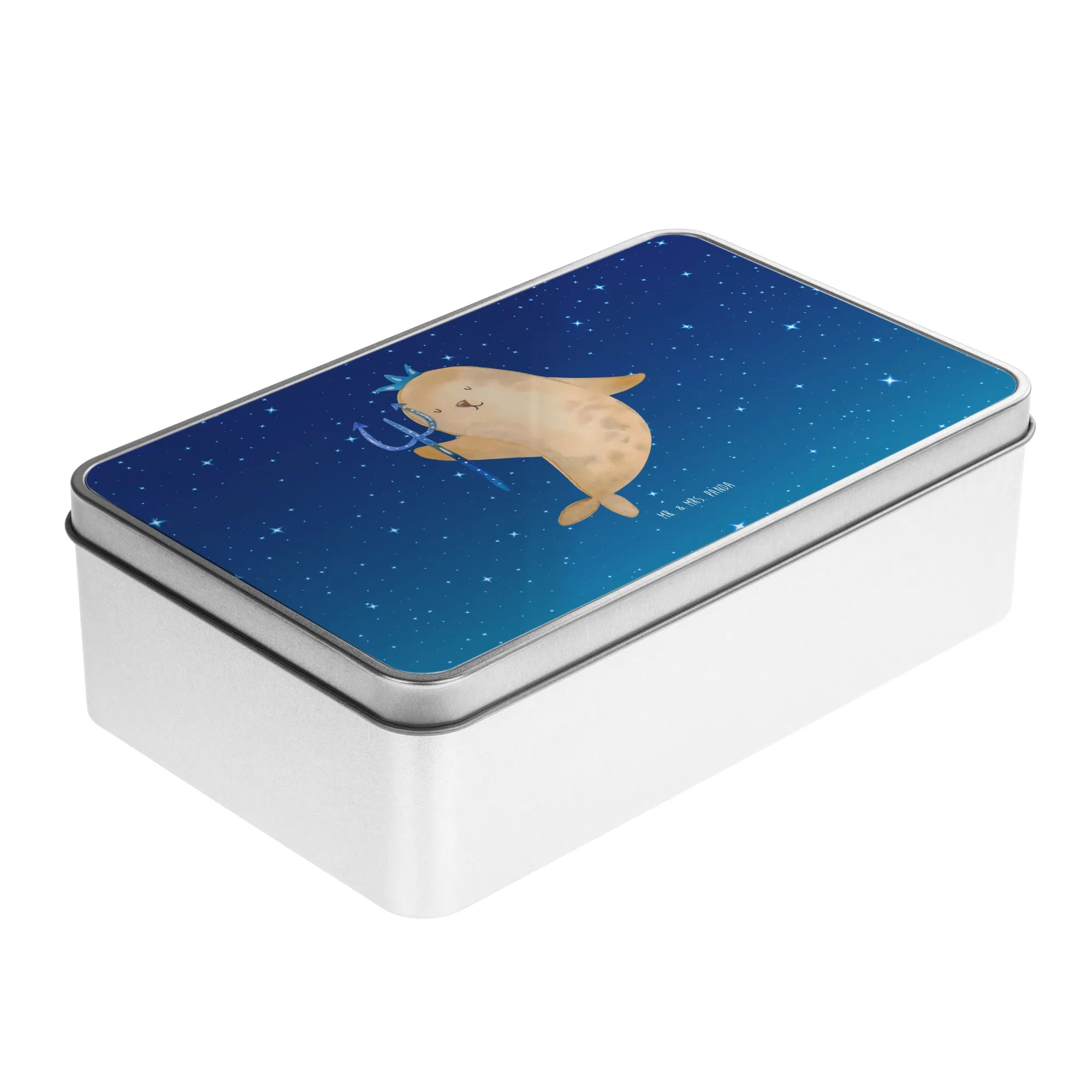 Every Aquarius embodies spontaneity and a touch of grandiosity, and this metal tin captures that essence perfectly. Adorned with a charming illustration of a seal wearing a crown and holding a scepter, it encapsulates the fun and friendliness of this air sign. Plus, the adorable slogan "Spontan und grandios wie ein Wassermann" adds a playful touch that will surely bring a smile to every Aquarius’s face.