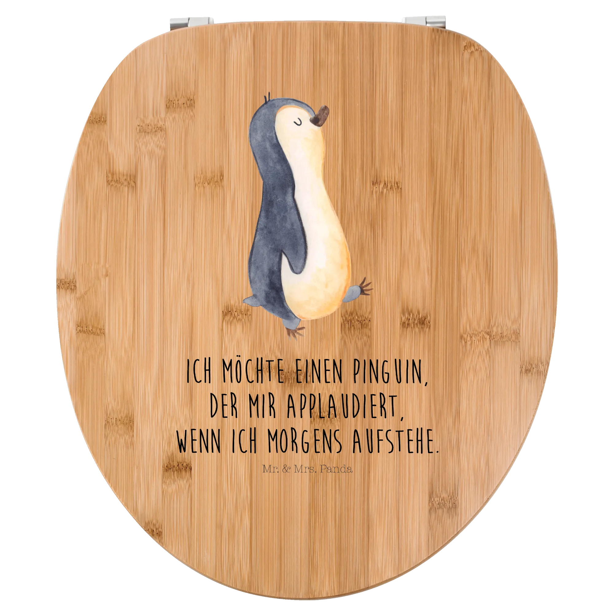 Motif toilet seat Penguin march - with saying - Bamboo - Transparent