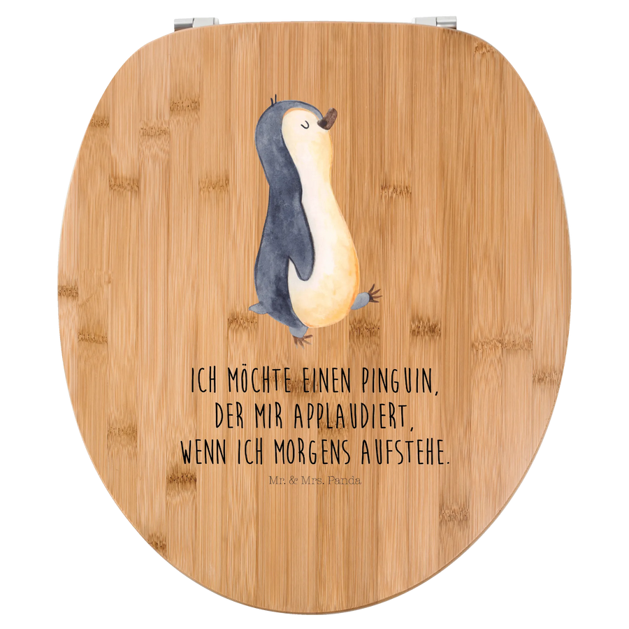 Remember to embrace those delightful moments of humor that our whimsical slogan brings: 'I need a penguin who applauds me when I get up in the morning!' A continuous reminder to rise with a smile and enjoy even the smallest moments in life. Make everyday routines brighter with the cheerful Mr. & Mrs. Panda Penguin Marching toilet seat! Add to your cart now, and let our penguin buddy accompany you on each trip to the loo! You deserve it!