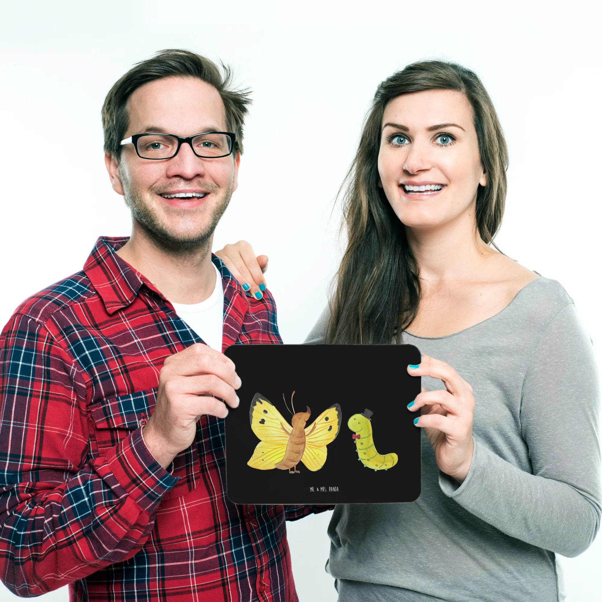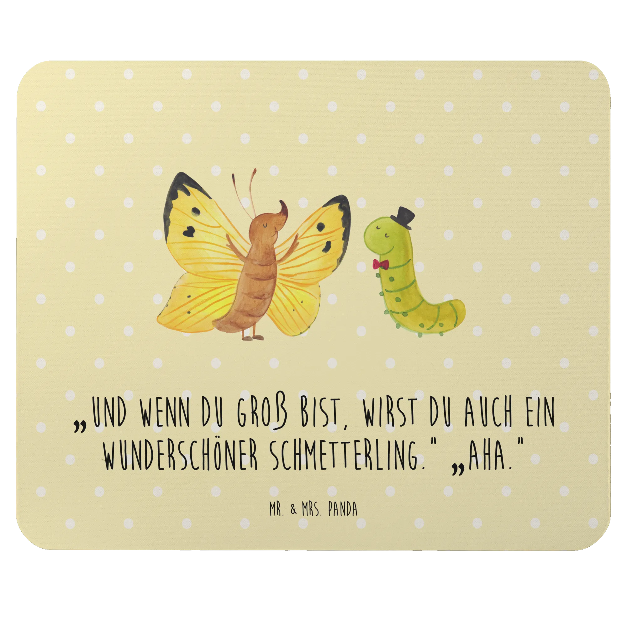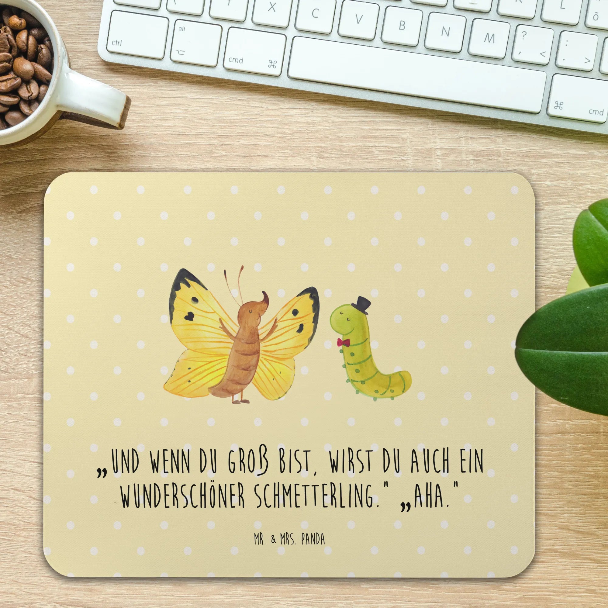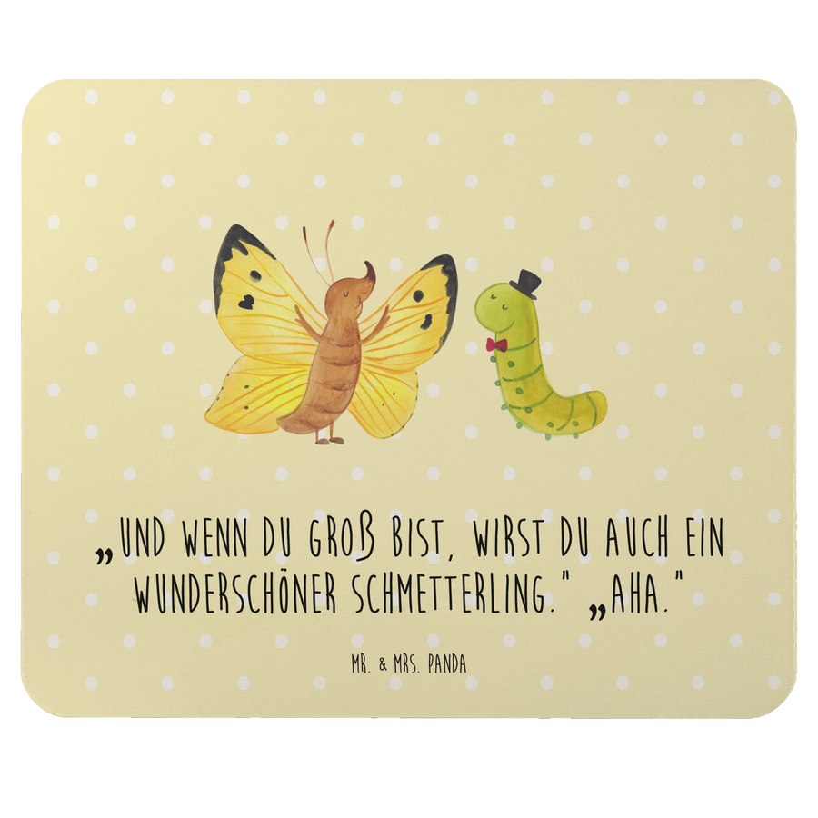Mouse mat Caterpillar butterfly - with a saying - Yellow Pastel