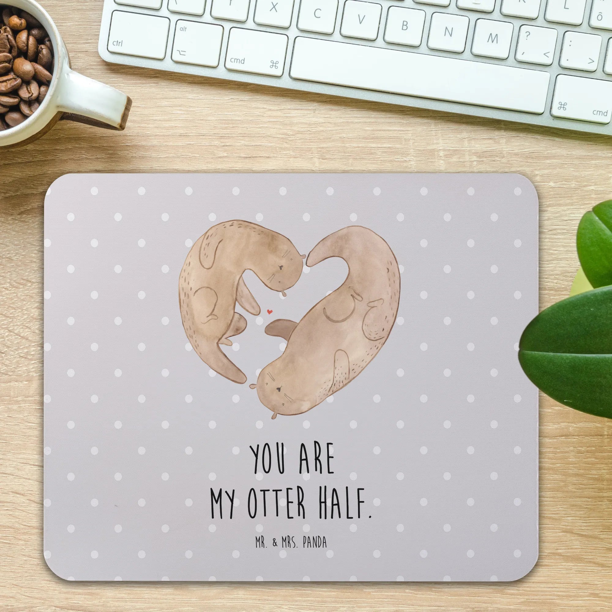 Mouse mat otter Heart - with a saying - Pastel Gray
