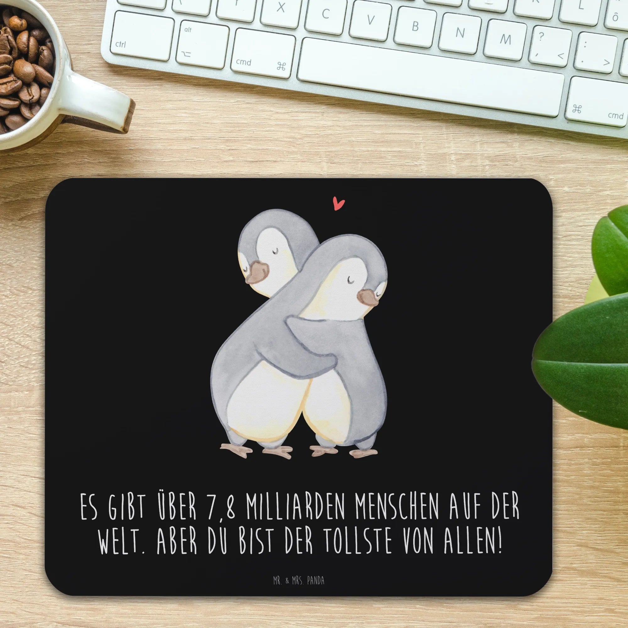In the heartwarming motif featuring our cuddling penguins, we capture a moment of pure love and connection. These adorable creatures stand closely together, radiating affection as one wraps its wing around the other. Their gentle smiles embody warmth and joy, creating an inviting atmosphere perfect for any occasion. Above them, a symbolic red heart floats, representing eternal love and togetherness. This motif serves as a beautiful reminder that in a world of over 7.8 billion people, the one you cherish most is truly the greatest of them all. Whether it's a Valentine's Day gift for that special woman in your life, an anniversary token, or a thoughtful gesture for your partner, this design delights in celebrating love and togetherness.