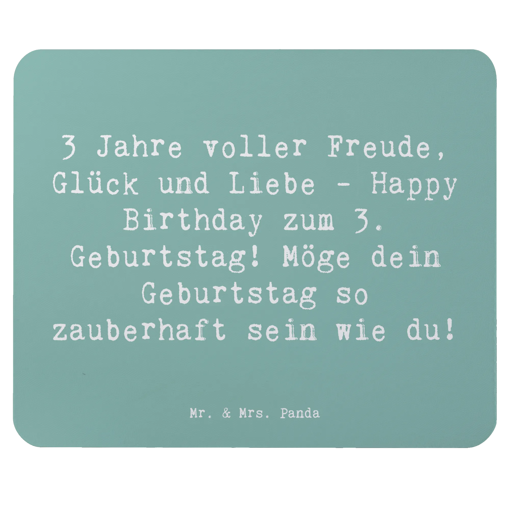Suchst du nach dem perfekten Geschenk zum 3. Geburtstag? Dann ist unser einzigartiges Mauspad mit dem zauberhaften Slogan "3 Jahre voller Freude, Glück und Liebe - Happy Birthday zum 3. Geburtstag! Möge dein Geburtstag so zauberhaft sein wie du!" von Mr. & Mrs. Panda genau das Richtige! Diese liebevoll gestaltete Mausunterlage bringt nicht nur Freude ins Arbeitszimmer, sondern versüßt auch jeden Arbeitstag. Egal, ob als Geburtstagsüberraschung für dein Kind, ein Nichten- oder Neffen-Geschenk oder einfach nur als süßer Akzent für deinen eigenen Schreibtisch, dieses wunderschöne Mauspad wird Herzen höher schlagen lassen.