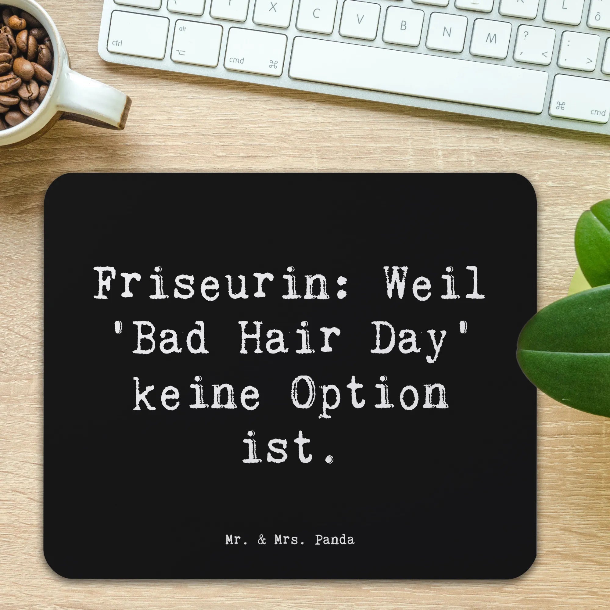 Entdecke das wunderschöne Mauspad "Friseurin: Weil 'Bad Hair Day' keine Option ist." aus der kreativen Kollektion von Mr. & Mrs. Panda! Dieses einzigartige Mauspad ist nicht nur ein stilvolles Accessoire für Dein Homeoffice oder Büro, sondern auch ein ganz besonderes Geschenk für Friseurinnen und Friseure. Es vermittelt auf charmante Weise die Liebe zum Beruf und bringt ein Lächeln in den Arbeitsalltag.