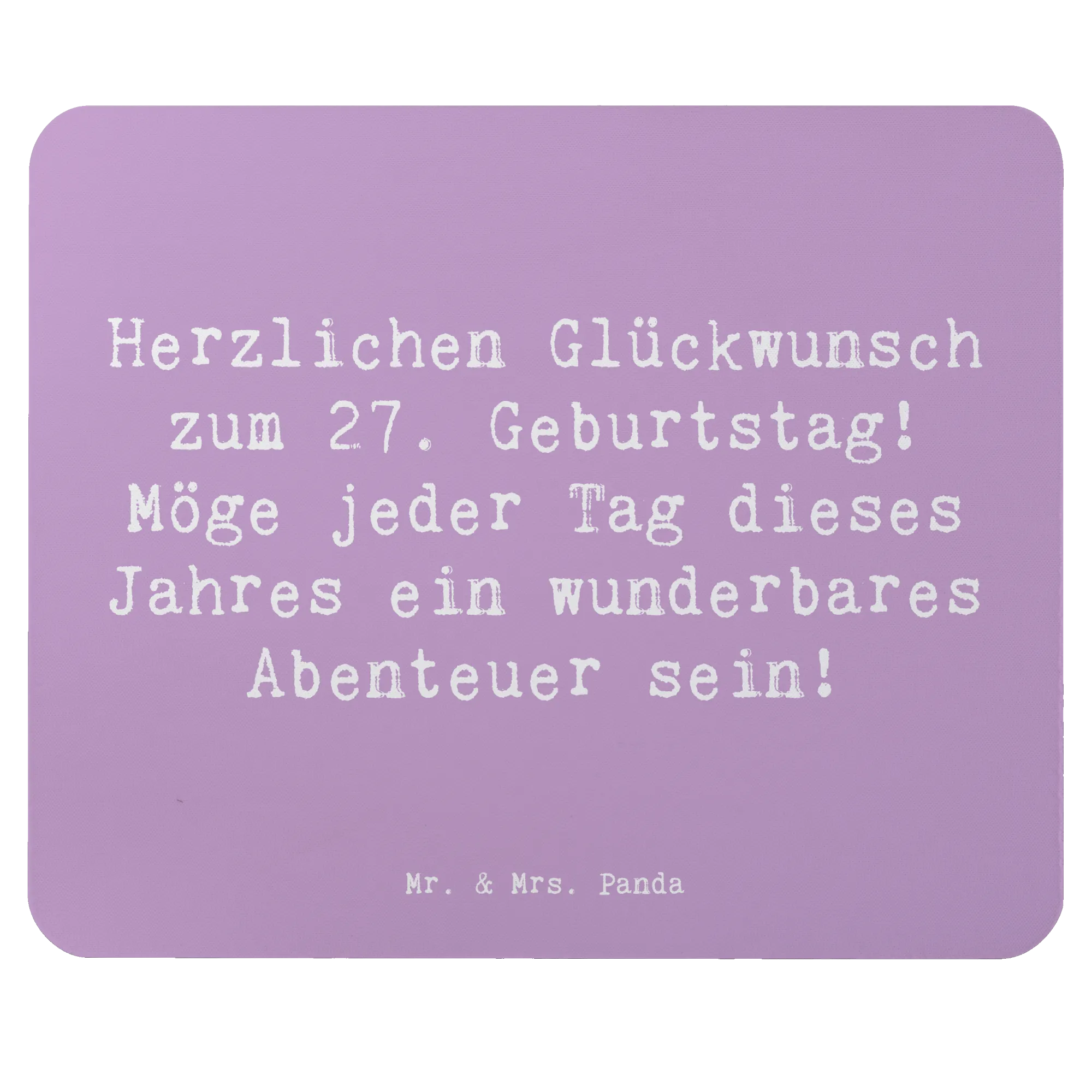 Du suchst das perfekte Geschenk zum 27. Geburtstag? Dann ist unser einzigartiges Mauspad von Mr. & Mrs. Panda genau das Richtige für dich! Mit dem liebevollen Slogan "Herzlichen Glückwunsch zum 27. Geburtstag! Möge jeder Tag dieses Jahres ein wunderbares Abenteuer sein!" wird das Arbeiten am Computer gleich viel inspirierender!
