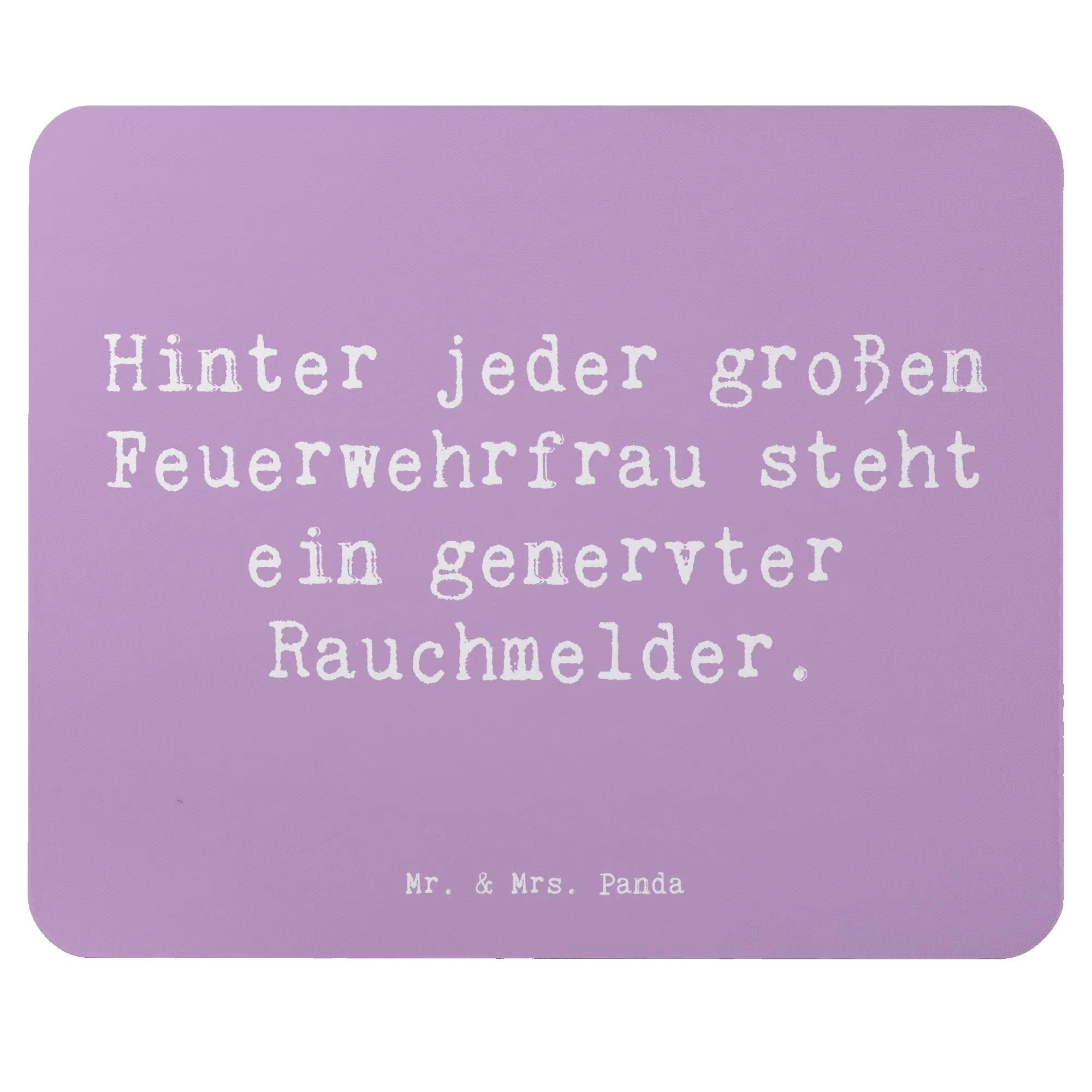 Dieses Mauspad von Mr. & Mrs. Panda ist das perfekte Geschenk für alle Feuerwehrfrauen oder Feuerwehrliebhaber! Mit dem charmanten Spruch "Hinter jeder großen Feuerwehrfrau steht ein genervter Rauchmelder" wird jedes Homeoffice oder Büro zum Hingucker.