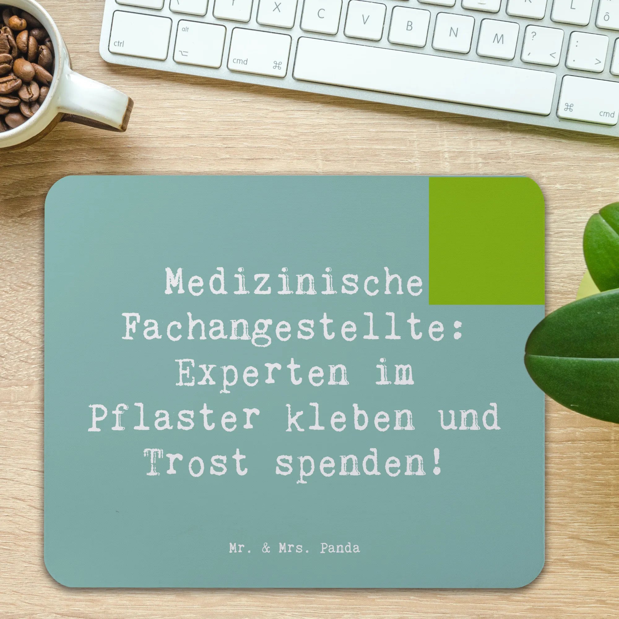 Das kleine Mauspad "Medizinische Fachangestellte: Experten im Pflaster kleben und Trost spenden!" von Mr. & Mrs. Panda ist der perfekte Begleiter für alle, die in der Medizin arbeiten und ihren Büroalltag mit einer Prise Humor und Stil aufpeppen möchten. Gezeichnet mit viel Liebe und Leidenschaft von Mrs. Panda, bringt dieses Mauspad eine besondere Note in Dein Arbeitszimmer oder Homeoffice.
