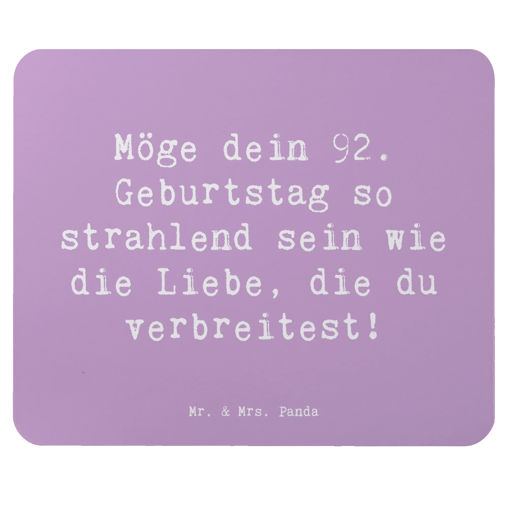 Du suchst nach dem perfekten Geschenk für den besonderen Menschen, der seinen 92. Geburtstag feiert? Dann ist das liebevoll gestaltete Mauspad von Mr. & Mrs. Panda genau das Richtige! 🎉 Mit dem Slogan "Möge dein 92. Geburtstag so strahlend sein wie die Liebe, die du verbreitest!" ist es nicht nur ein praktisches Büroaccessoire, sondern auch eine herzliche Botschaft, die den Tag unvergesslich macht.