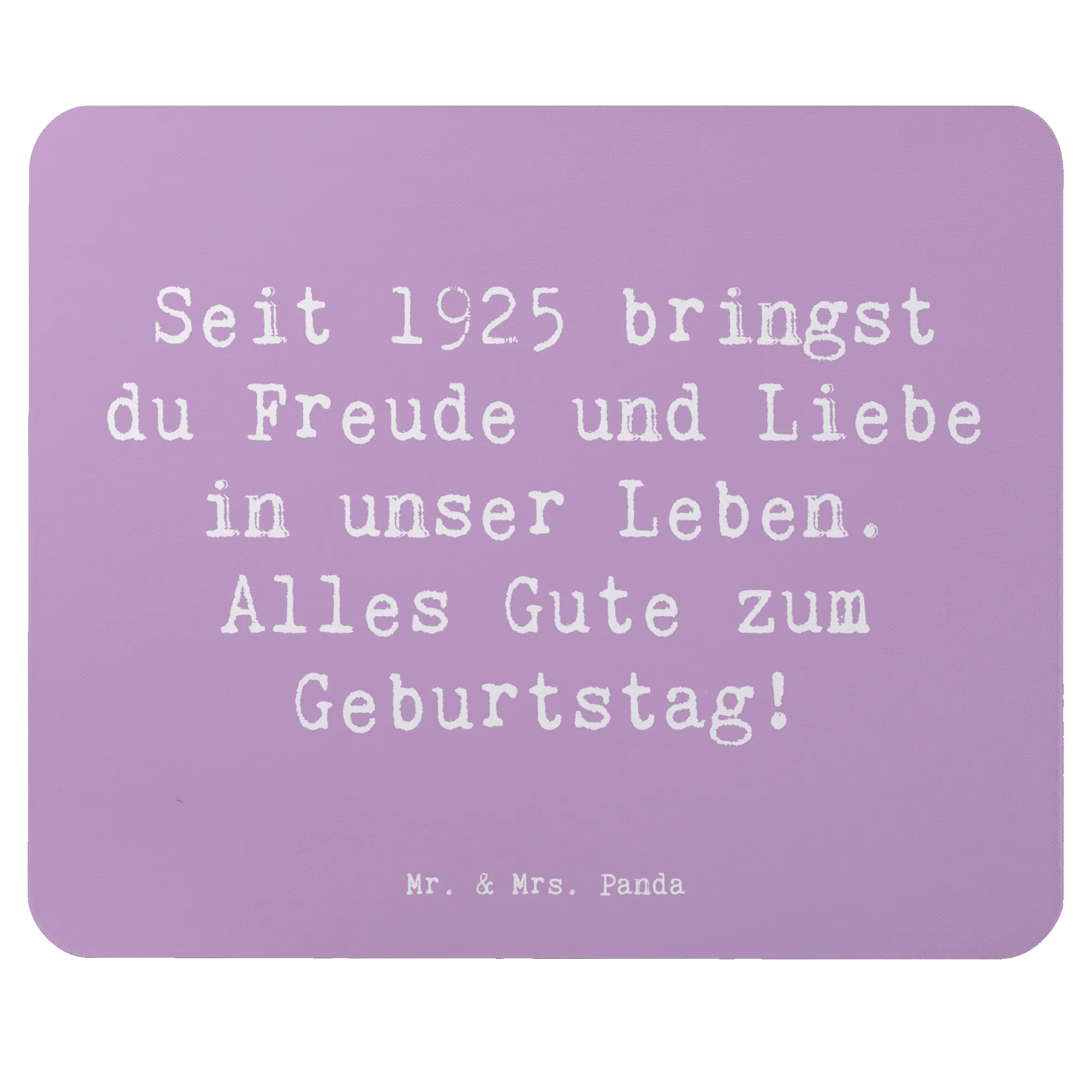 Das Mauspad "1925 Geburtstag" von Mr. & Mrs. Panda ist das perfekte Geschenk für alle, die einen besonderen Geburtstag feiern möchten! Stell dir vor, du schenkst etwas, das nicht nur praktisch ist, sondern auch mit einem herzlichen Spruch versehen ist, der die Freude und Liebe, die du teilst, perfekt einfängt. Mit dem Slogan „Seit 1925 bringst du Freude und Liebe in unser Leben. Alles Gute zum Geburtstag!“ ist dieses Mauspad ein Blickfang auf jedem Schreibtisch und bringt jeden an seinem Ehrentag zum Lächeln.