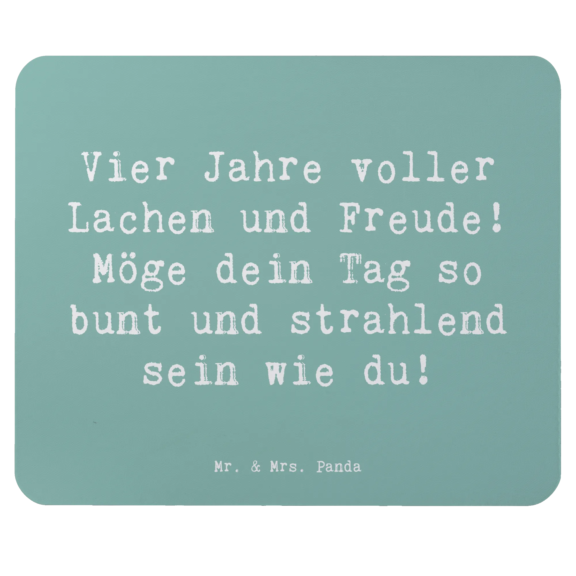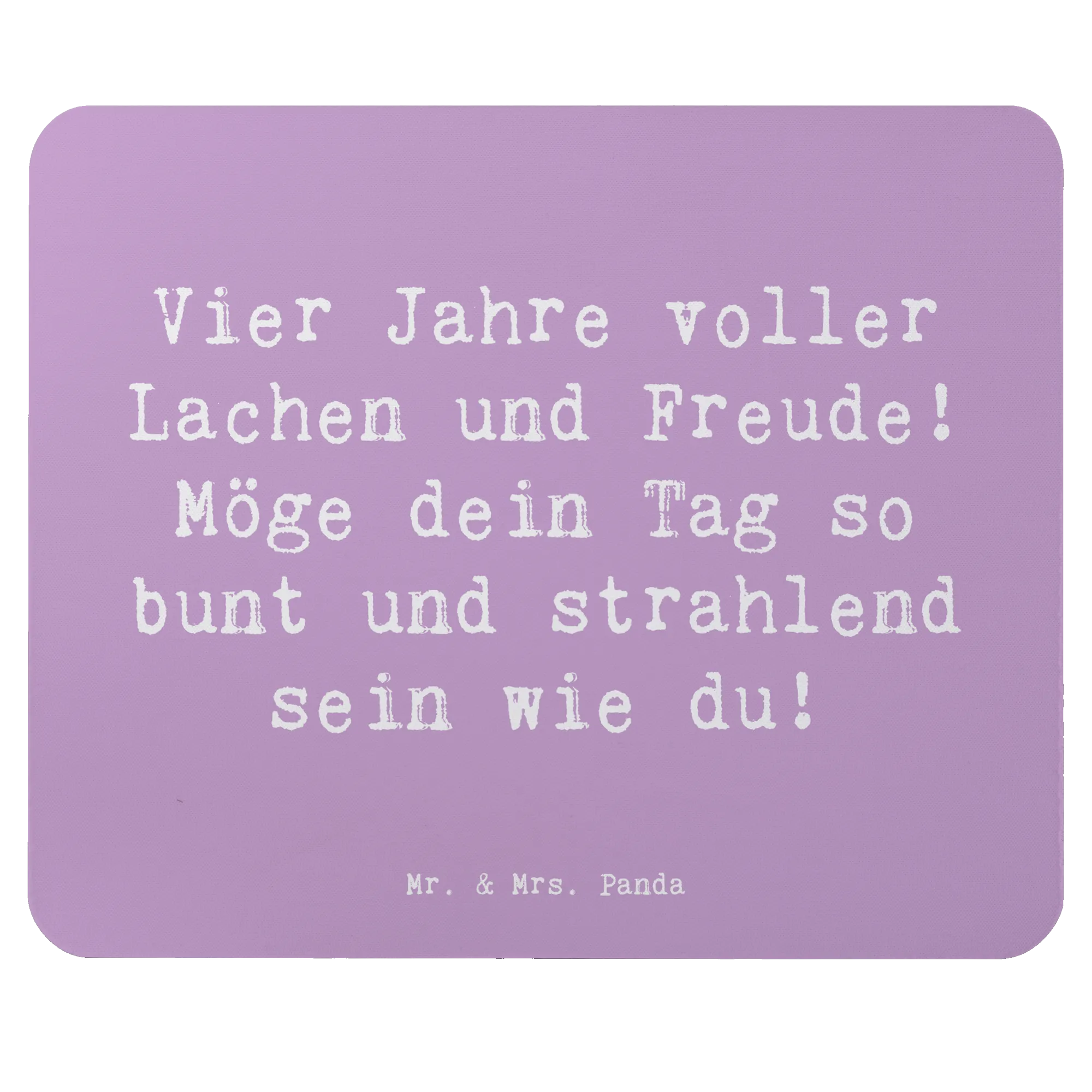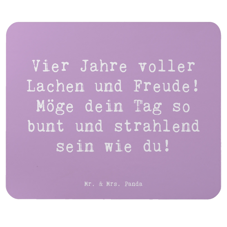 Suchst du das ideale Geschenk zum vierten Geburtstag? Dann ist das Mauspad "Vier Jahre voller Lachen und Freude! Möge dein Tag so bunt und strahlend sein wie du!" von Mr. & Mrs. Panda die perfekte Wahl!