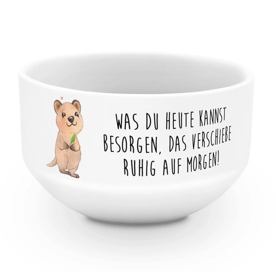 Welcome to the world of our delightful Quokka, that embodiment of joy and charm! With its big smile and bright eyes, this little friend captures the essence of living with happiness. Clutching a fresh green leaf, it serves as a reminder to enjoy the gifts of nature and also the little moments in life. Above its head, a floating pink heart signifies all the love surrounding us. The saying, 'Was du heute kannst besorgen, das verschiebe ruhig auf morgen!' resonates beautifully with the Quokka’s spirit, inviting you to unwind and laugh more! Revel in life with our adorable Quokka guiding the way.
