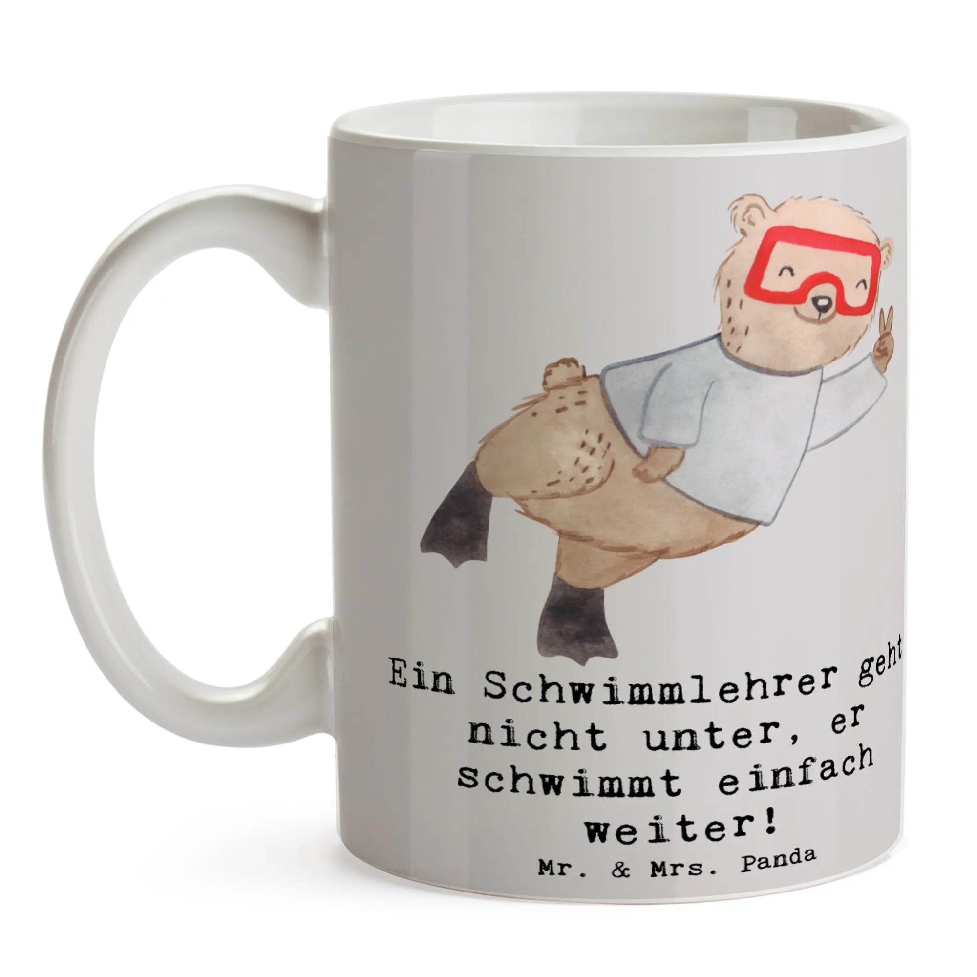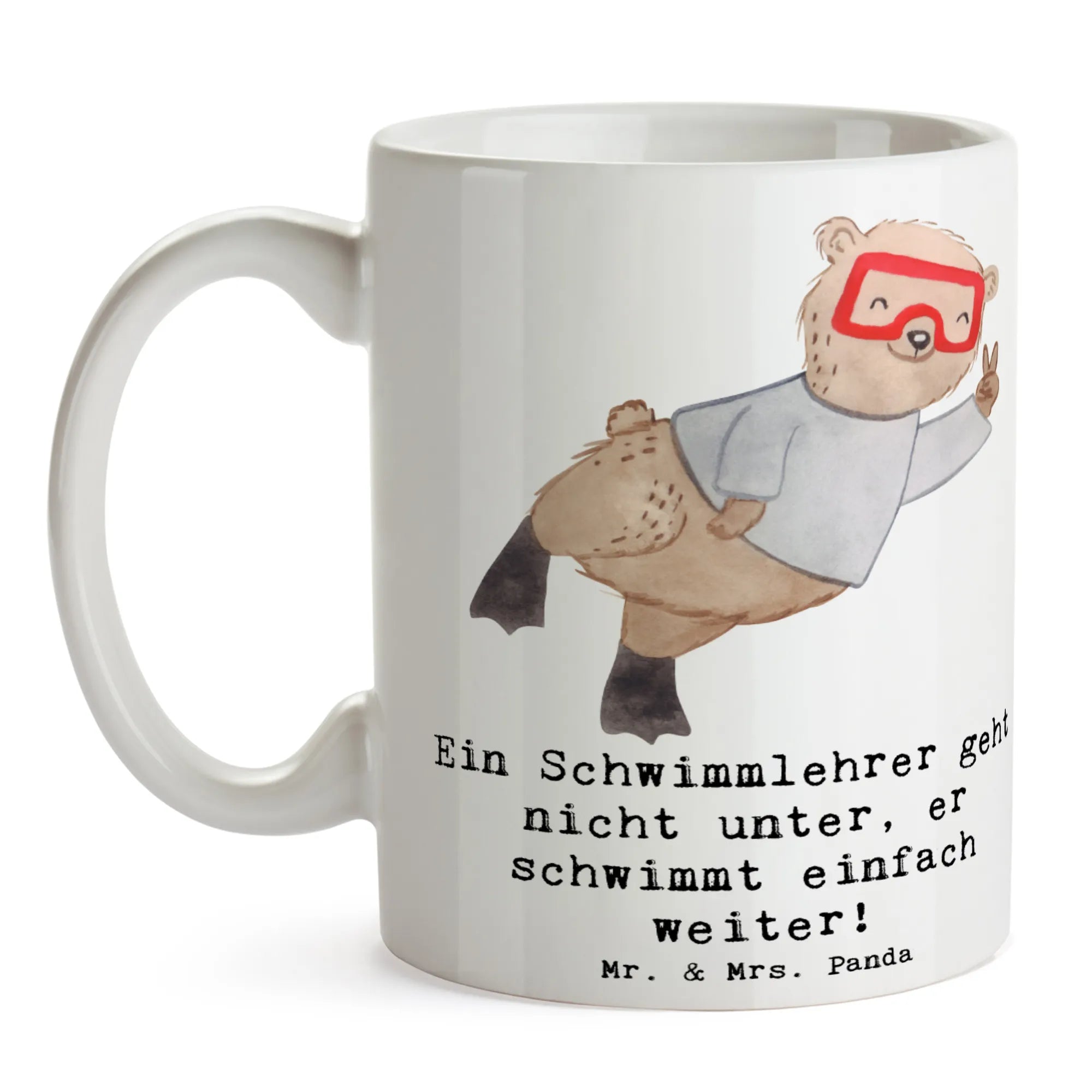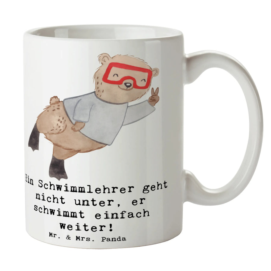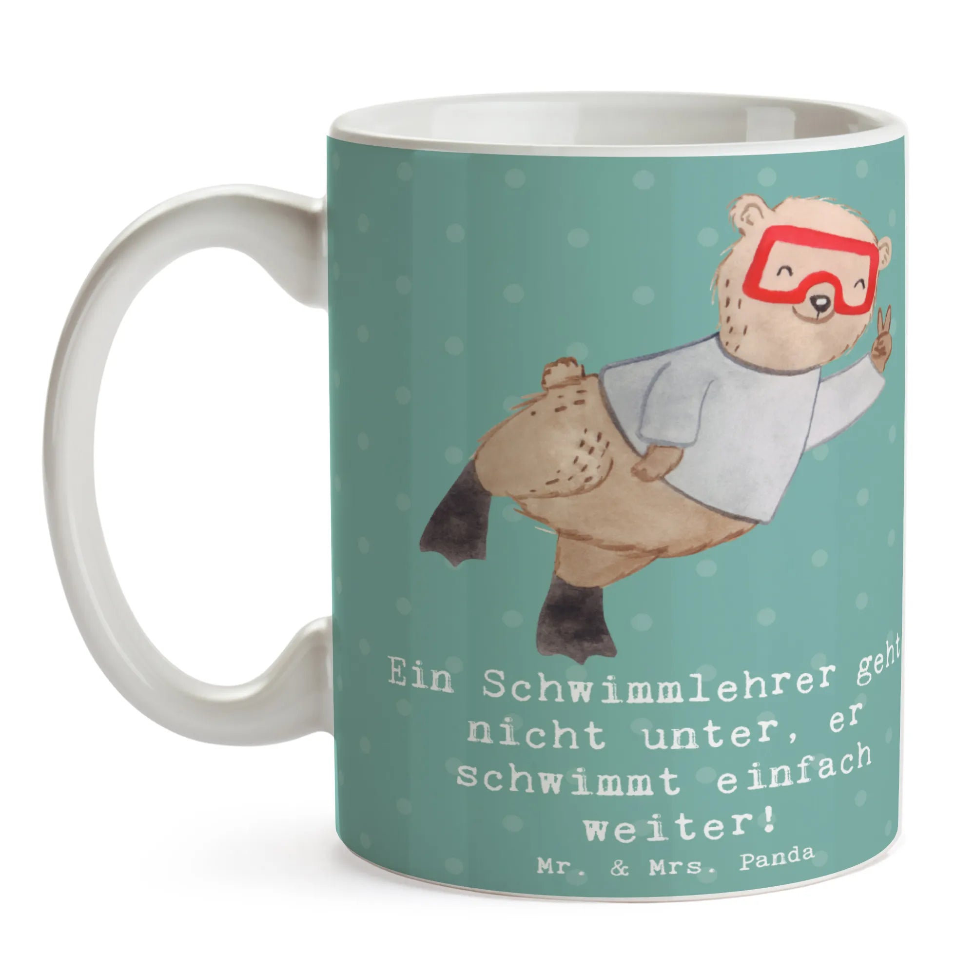 Ein Geschenk, das von Herzen kommt: Suchst Du ein Mitbringsel für einen Schwimmlehrer? Unsere Tasse „Schwimmlehrer“ aus der Berufe-Kollektion von Mr. & Mrs. Panda ist mit Liebe entworfen und bringt mit dem Spruch „Ein Schwimmlehrer geht nicht unter, er schwimmt einfach weiter!” ein Lächeln in jeden Alltag. 🌊