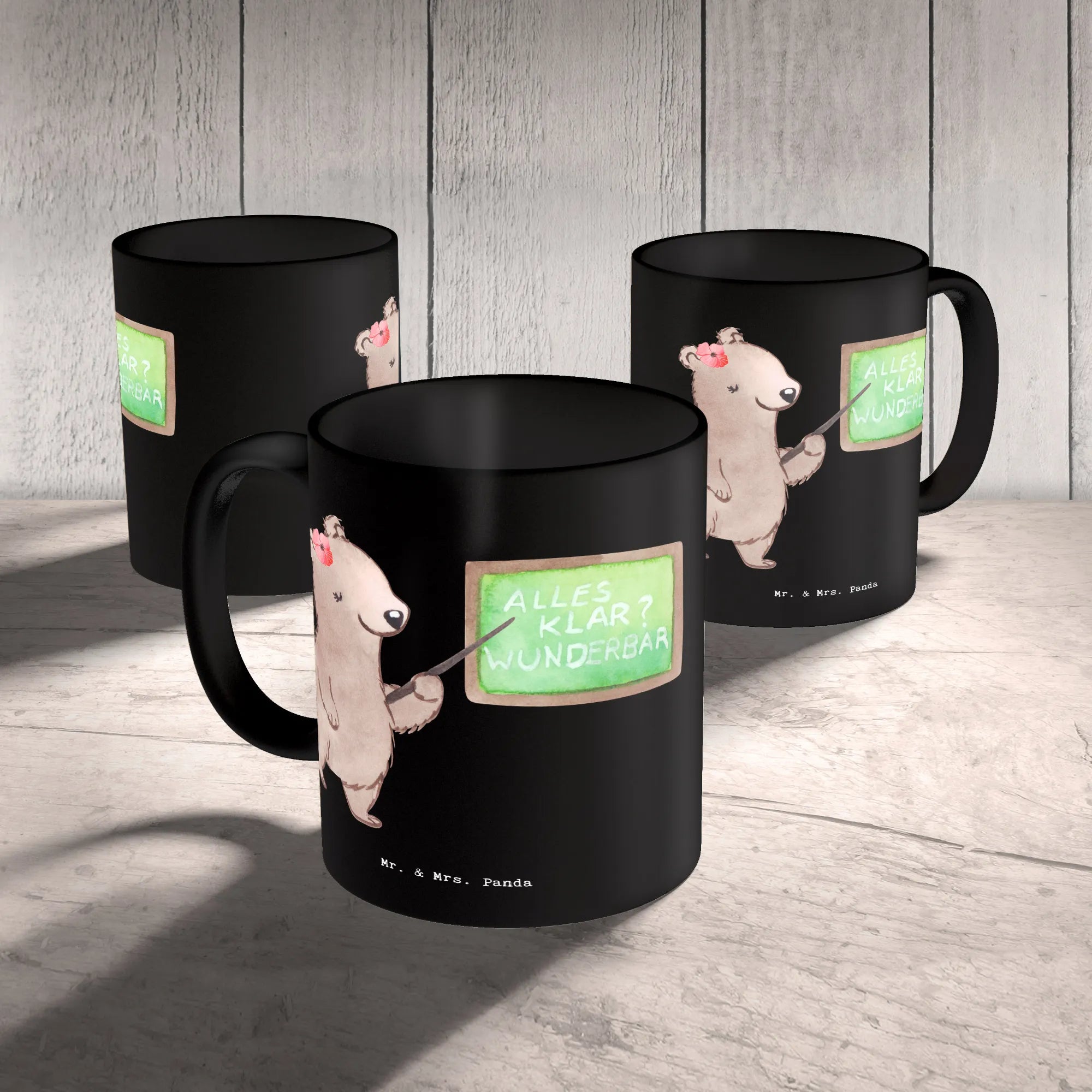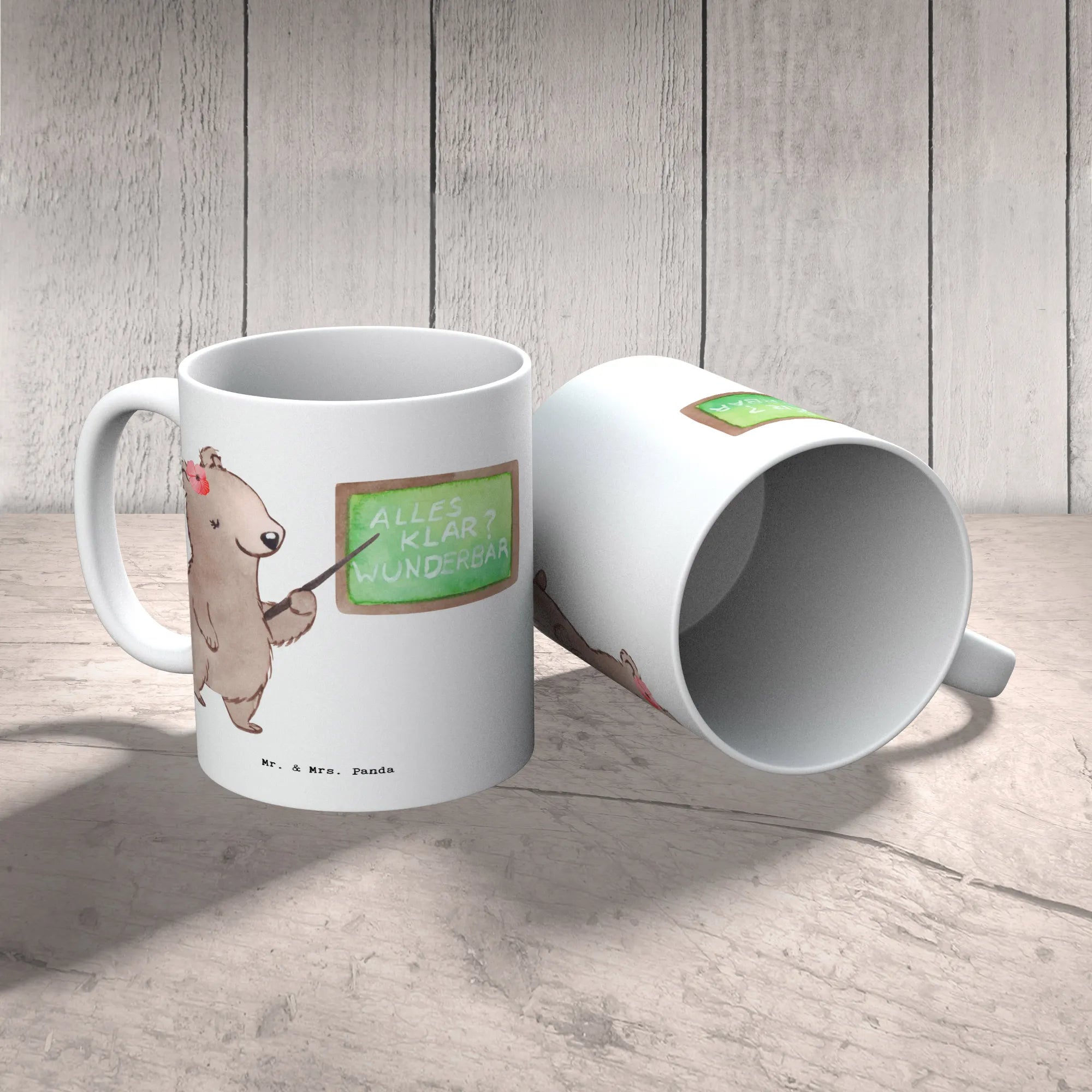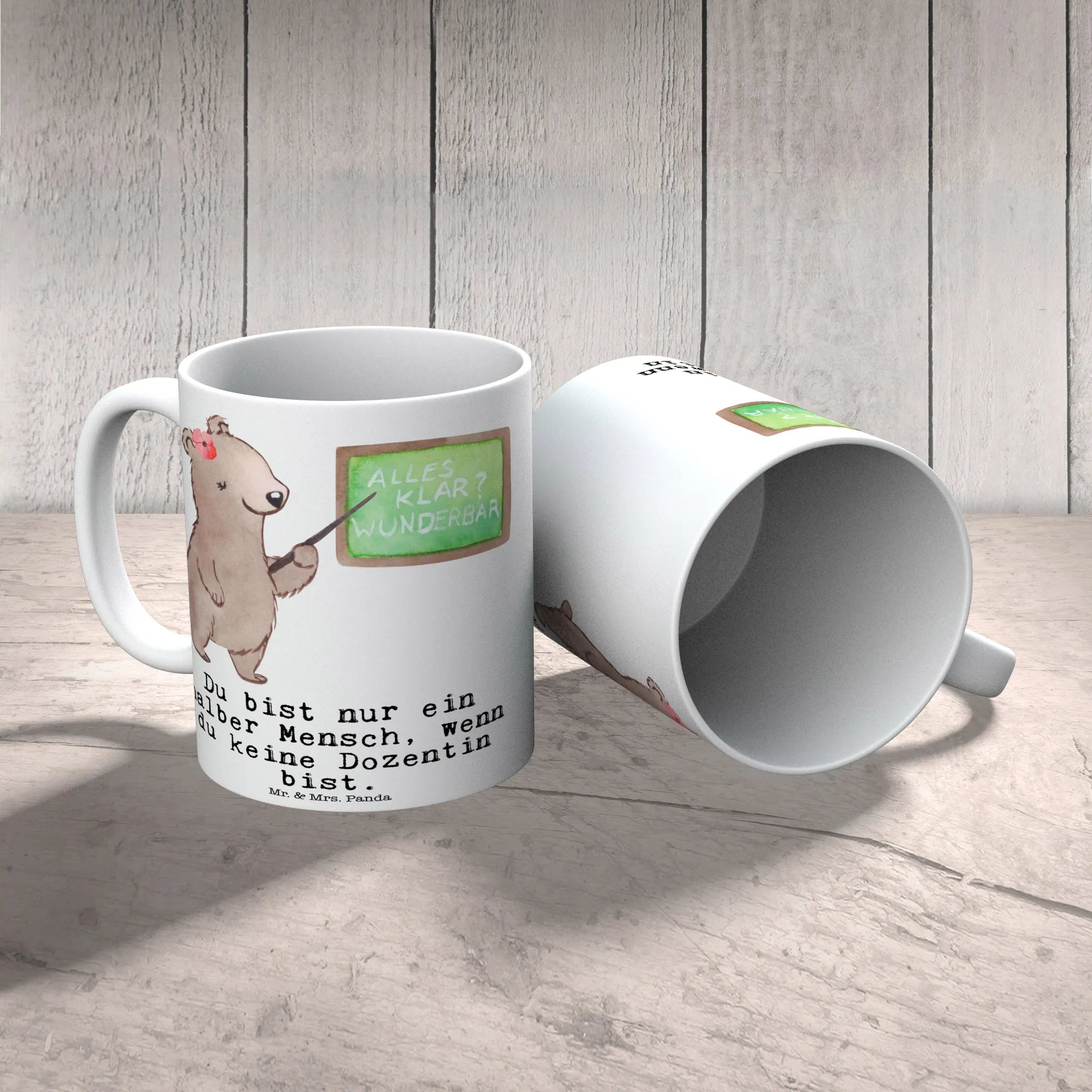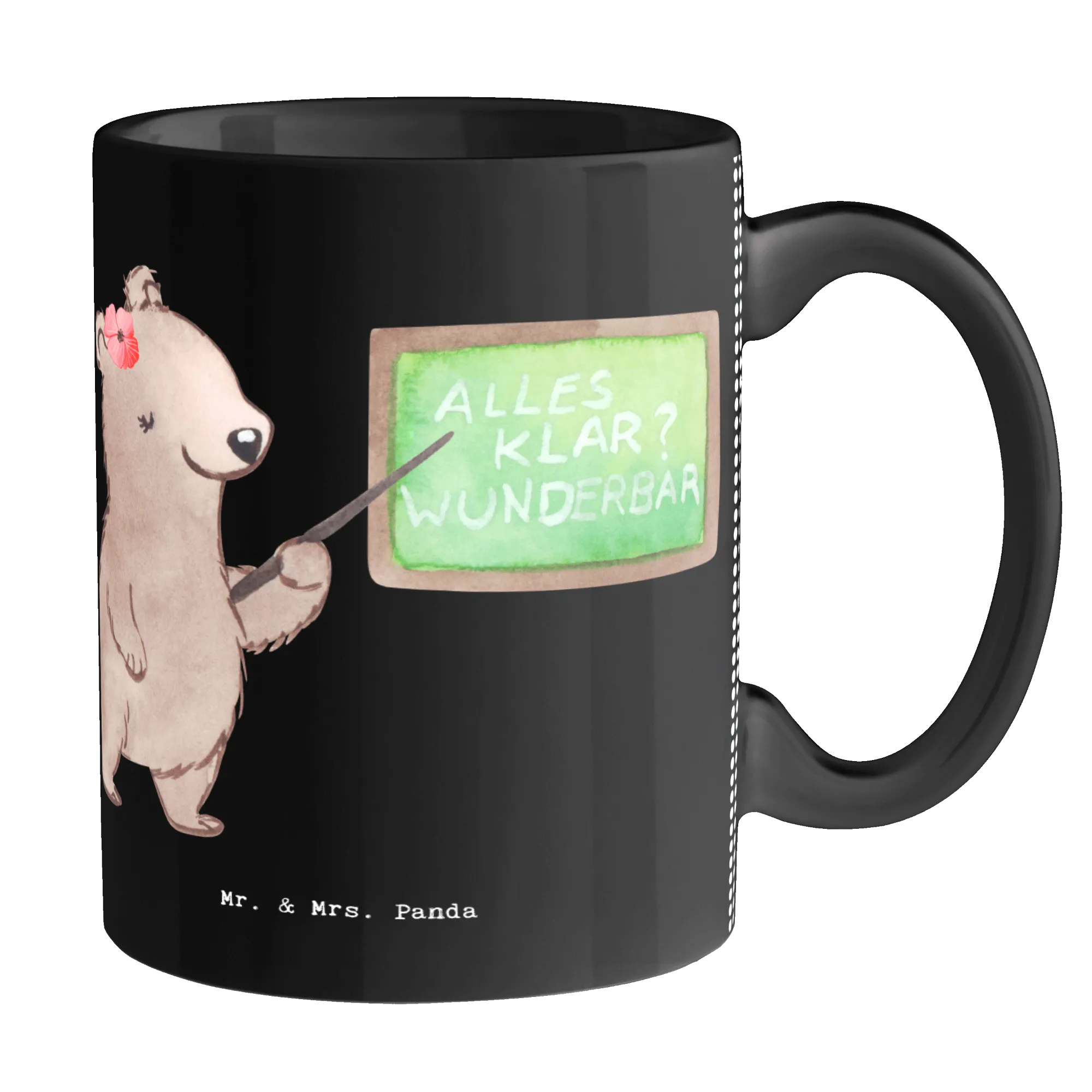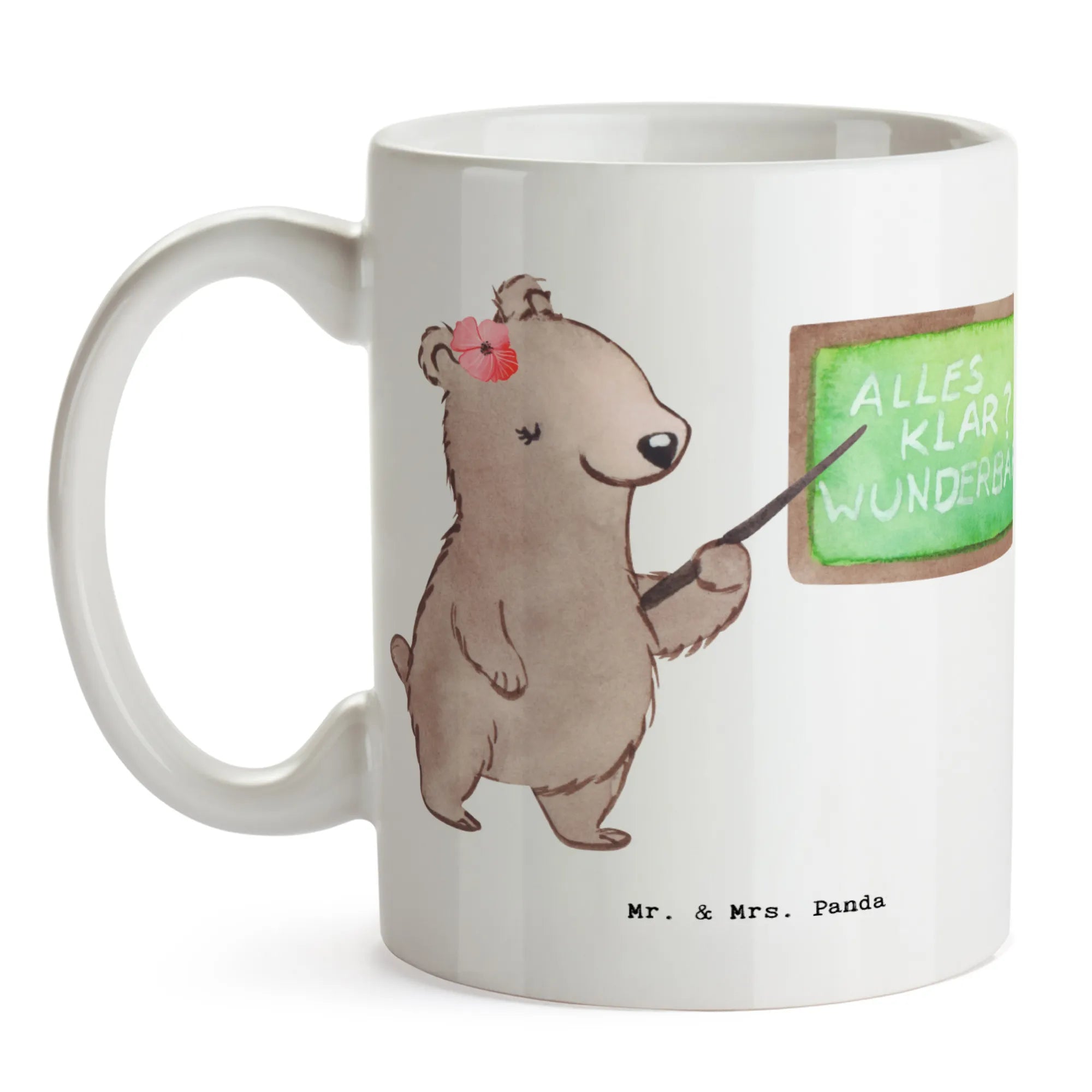 The Mr. & Mrs. Panda mug features a stunning illustration of a cute female bear standing proudly in front of a chalkboard, embodying the spirit of teaching. And let’s be honest: "Is life even worth living if you're not a lecturer?" – this playful saying is sure to elicit a smile while adding a touch of humor to those coffee breaks during lectures.