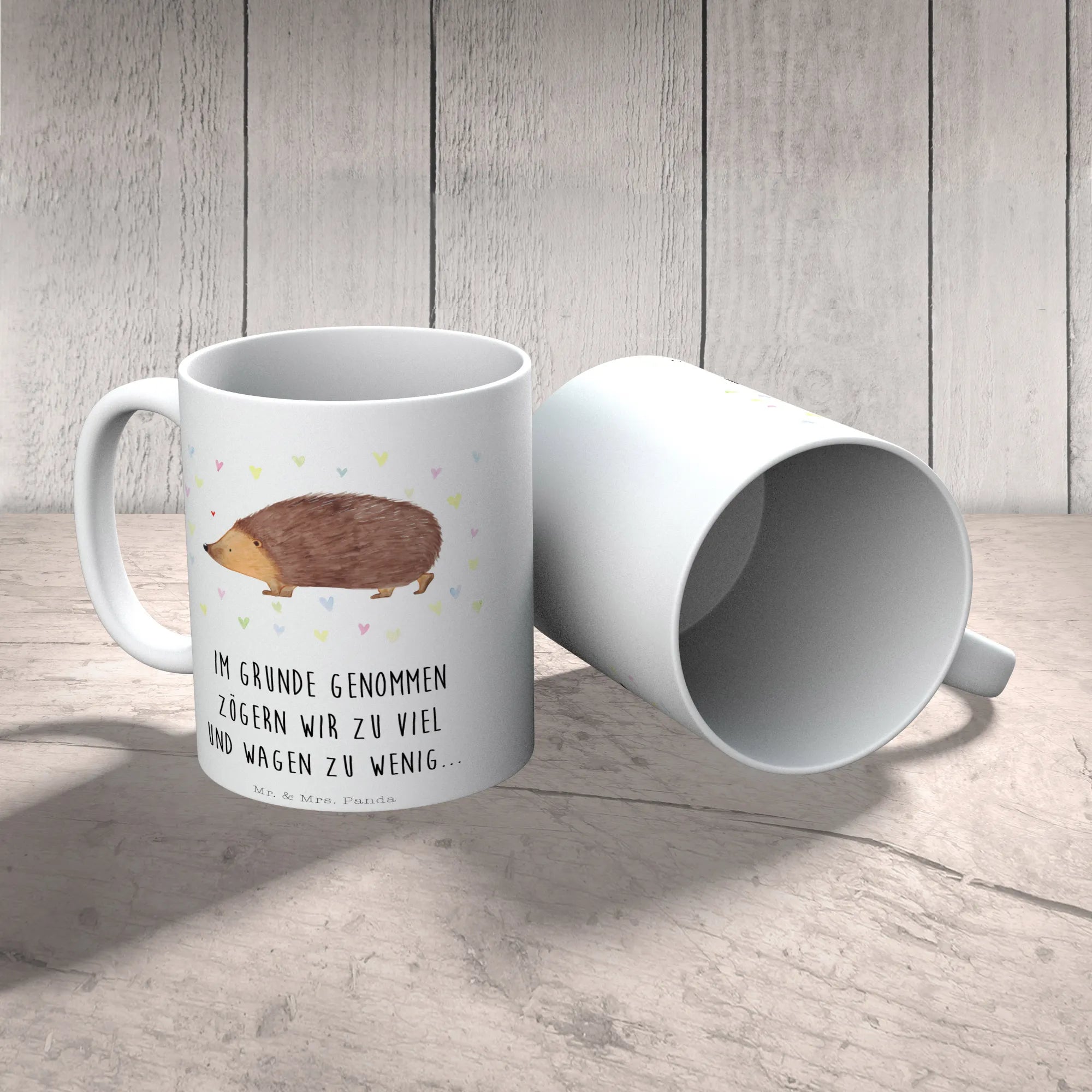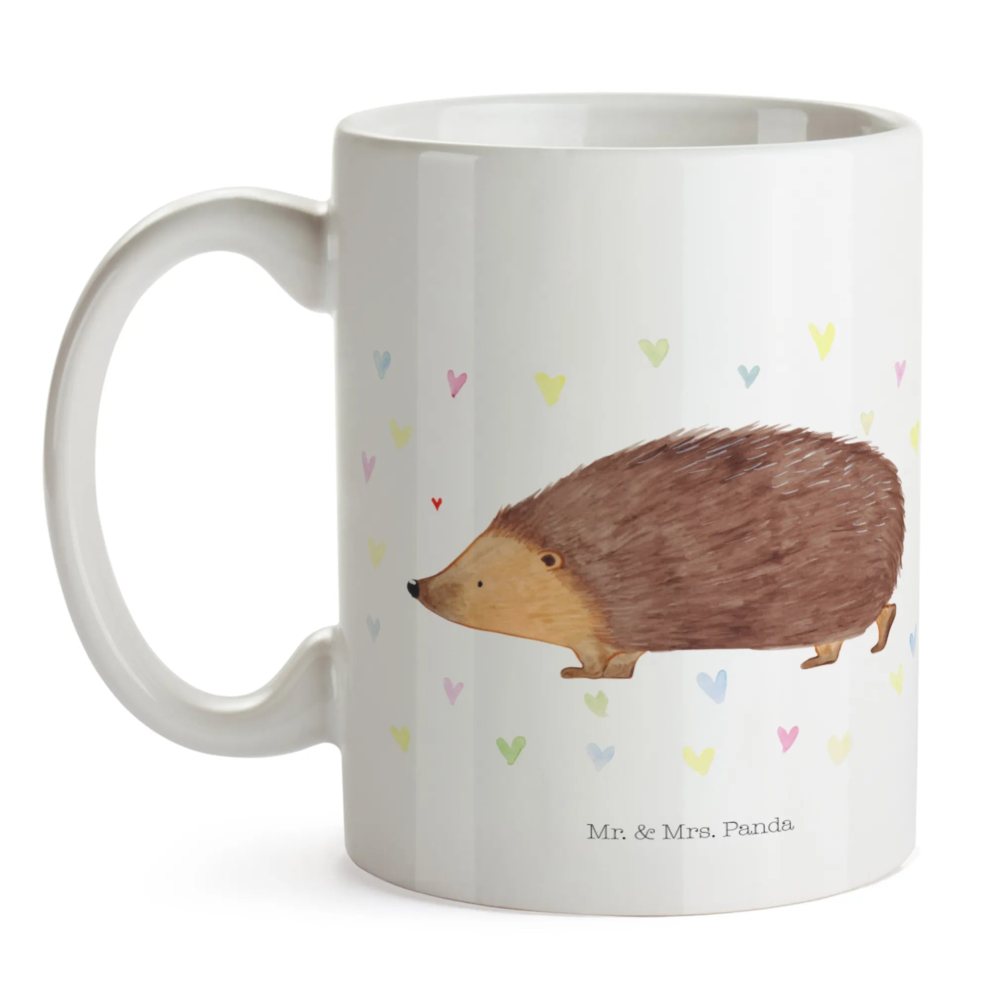 Mug Hedgehog hearts - with saying - Ceramics - White