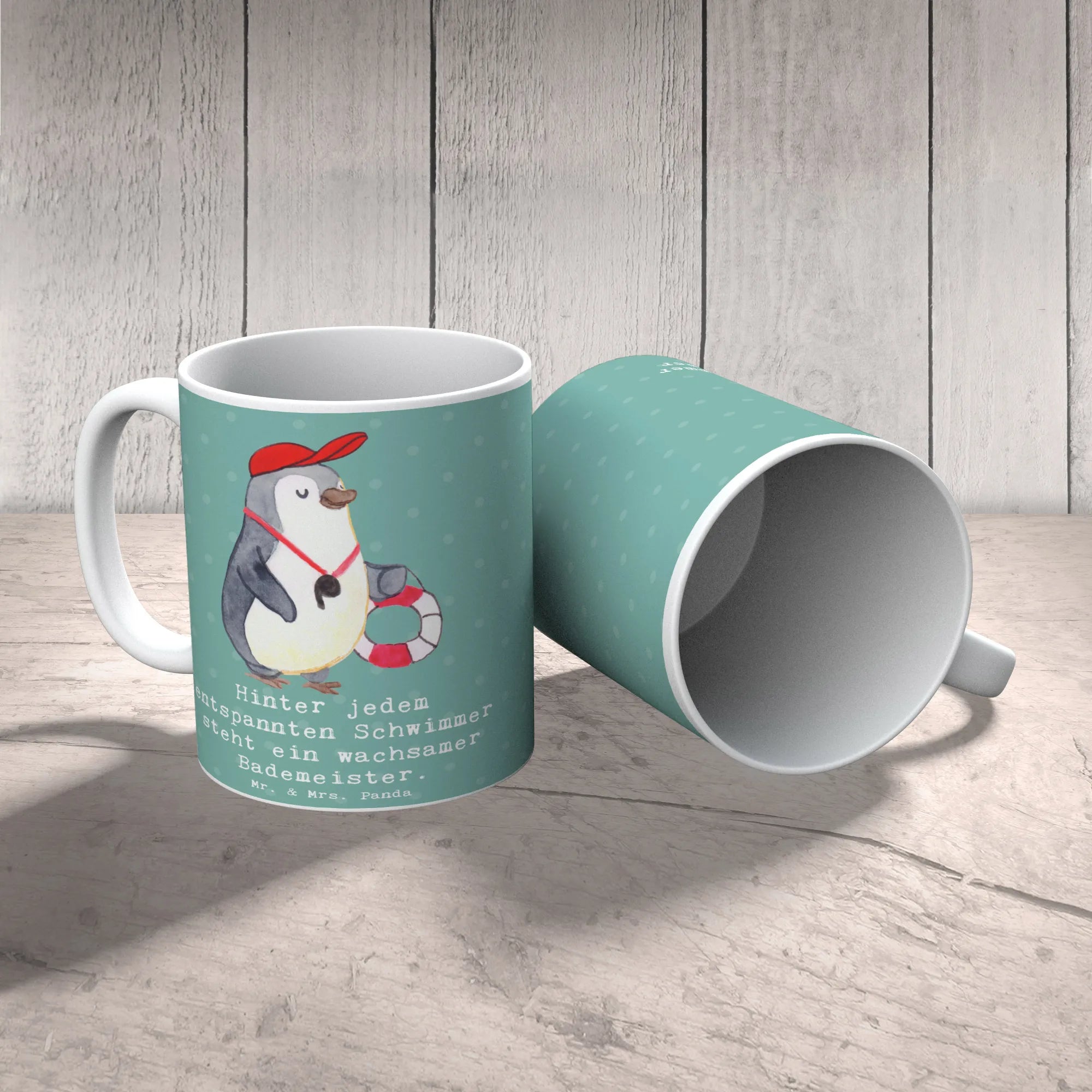 Mug Hinter jedem entspannten Schwimmer steht ein wachsamer Bademeister. - Grey Pastel