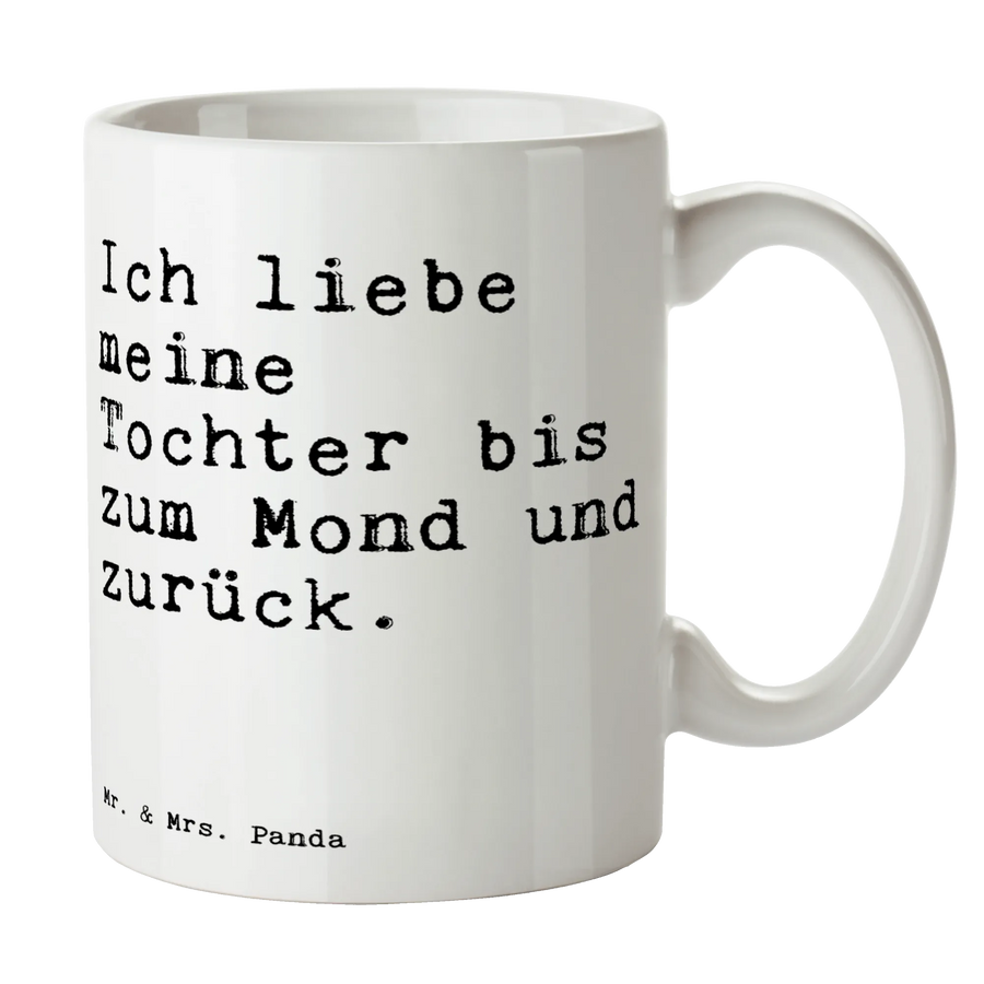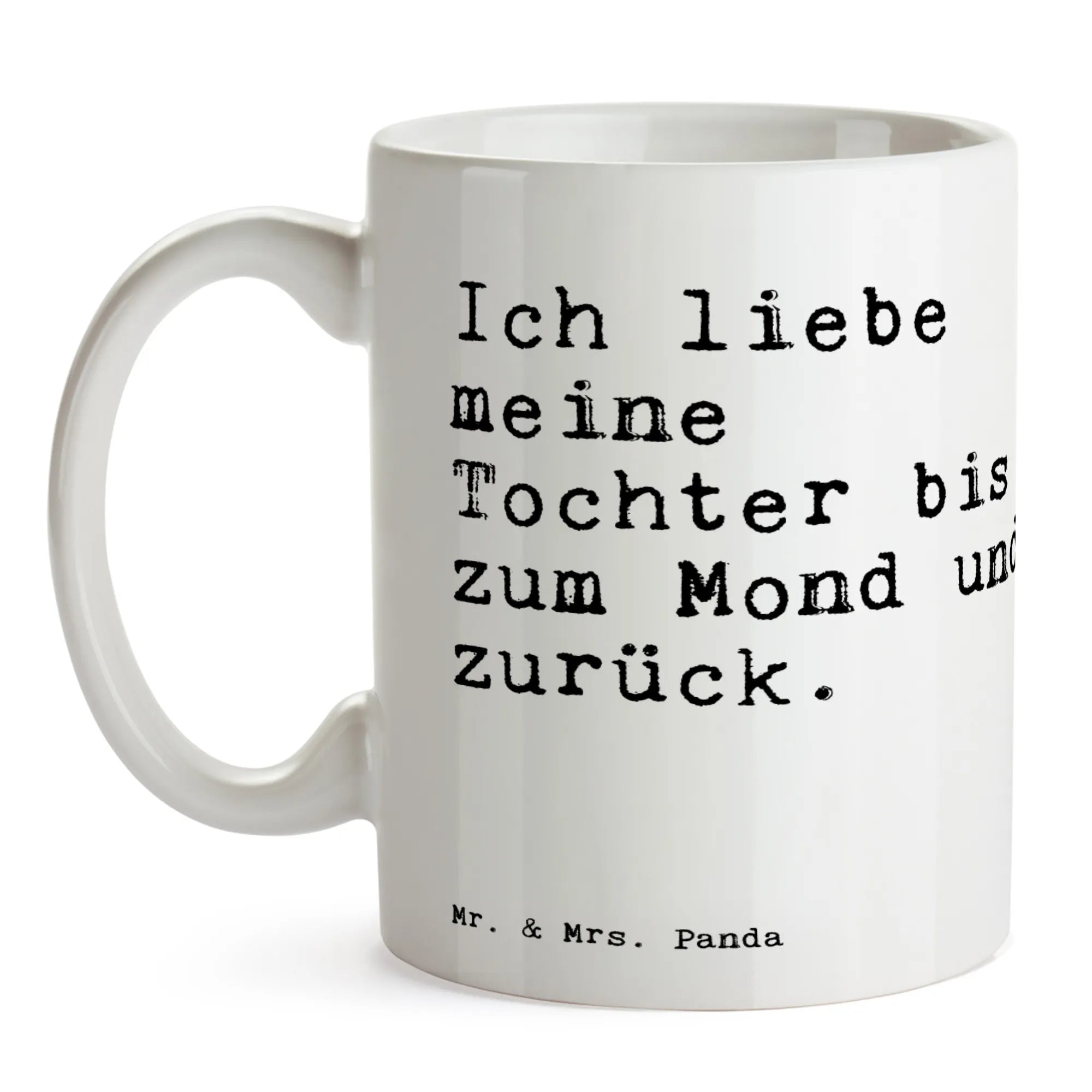 Suchst du ein Geschenk, das von Herzen kommt? Unsere Mr. & Mrs. Panda Tasse mit dem liebevollen Spruch „Ich liebe meine Tochter bis zum Mond und zurück.“ ist genau das: ein herzlicher Begleiter für den Alltag und ein täglicher Liebesbeweis.