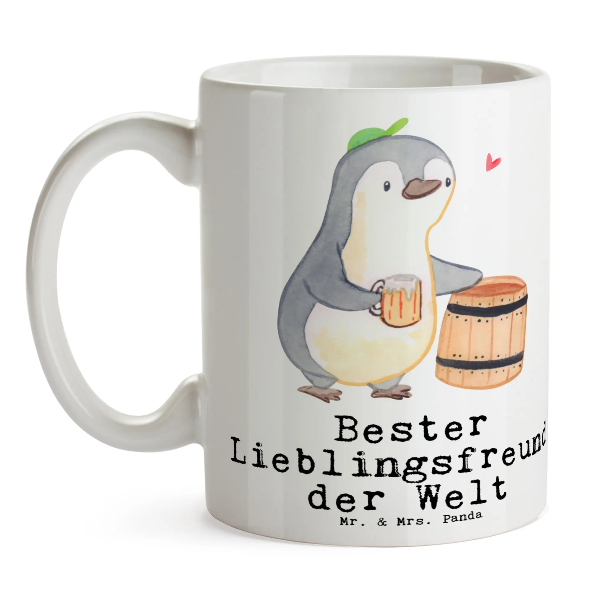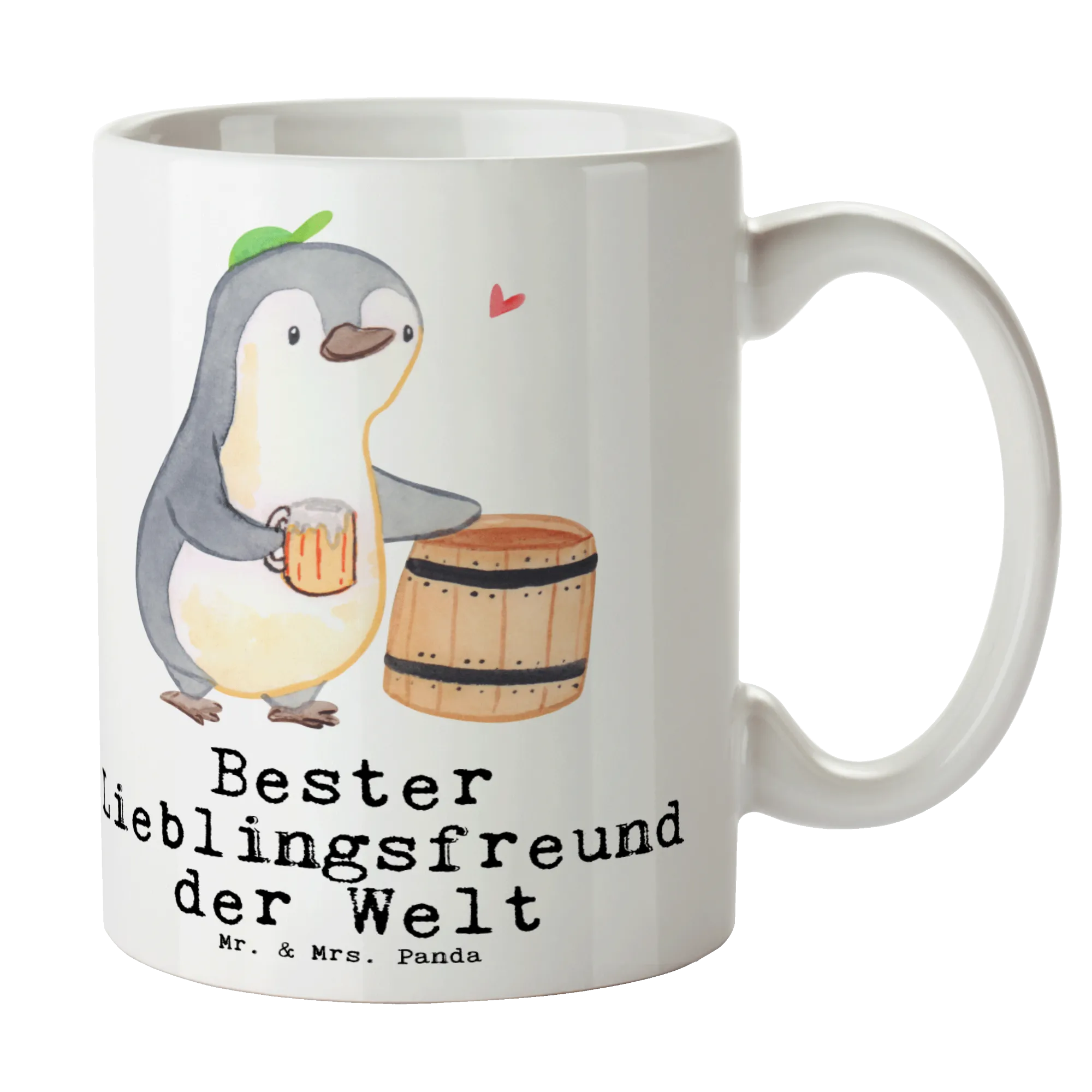 Picture a cheeky little penguin, bubbly with excitement, as it stands beside a barrel of beer, joyfully pouring itself a drink. This charming motif captures the heart of friendship with the saying 'Bester Lieblingsfreund der Welt'. It's a delightful reminder that the best times are often shared with our favorite buddies over a pint. Every laugh, every chat, every sip brings us closer, making our bonds even stronger. Let this penguin’s playful spirit inspire you to toast the moments you share with your beloved companions—a heartfelt celebration of the joy of life and friendship!