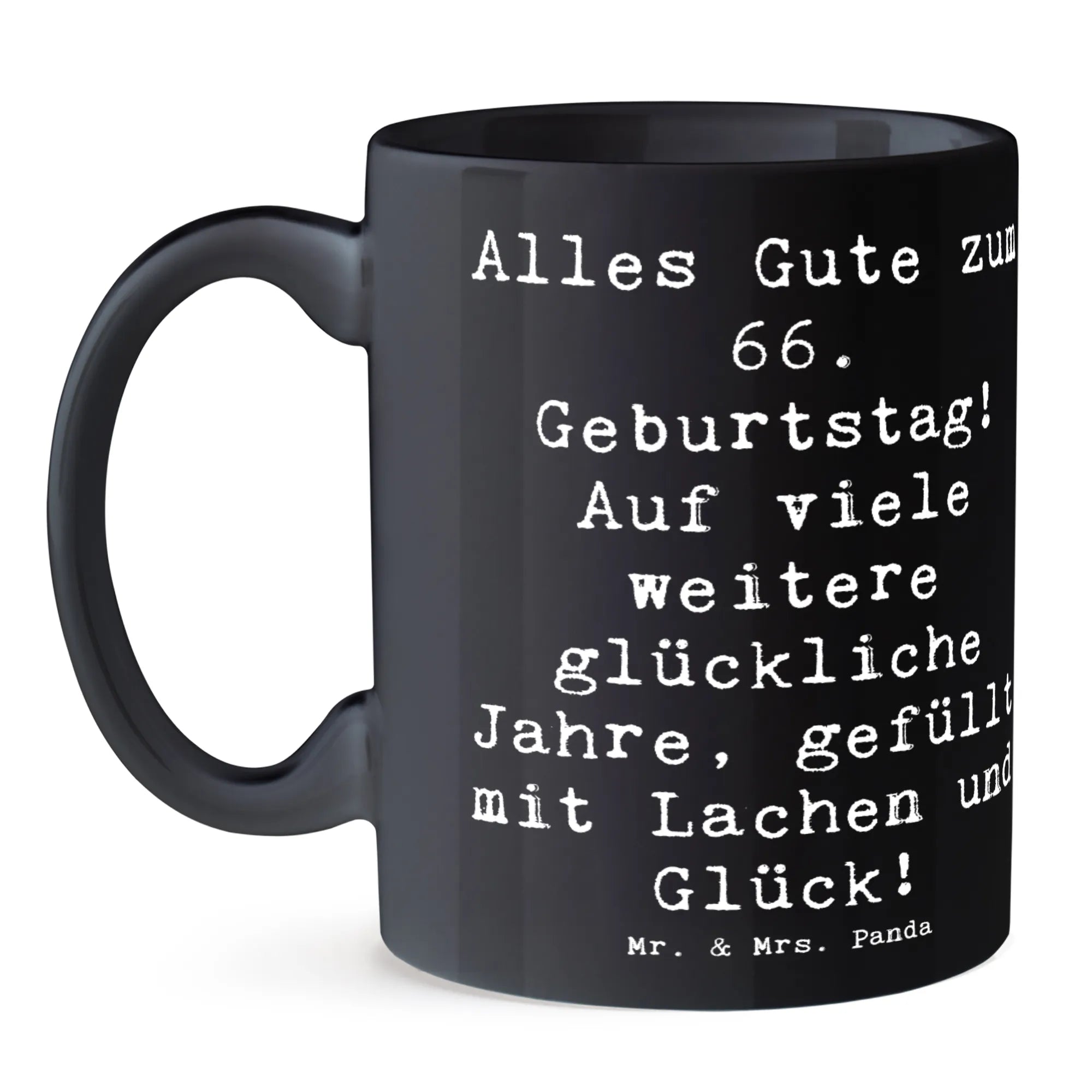 Mug Saying Alles Gute zum 66. Geburtstag! Auf viele weitere glückliche Jahre, gefüllt mit Lachen und Glück! - Black