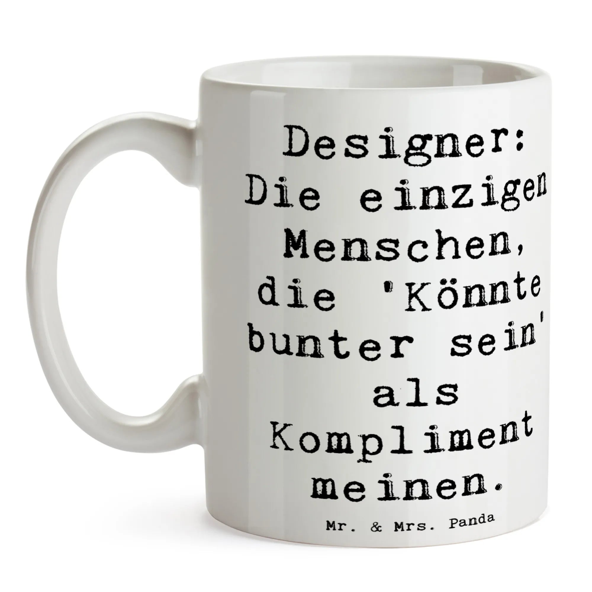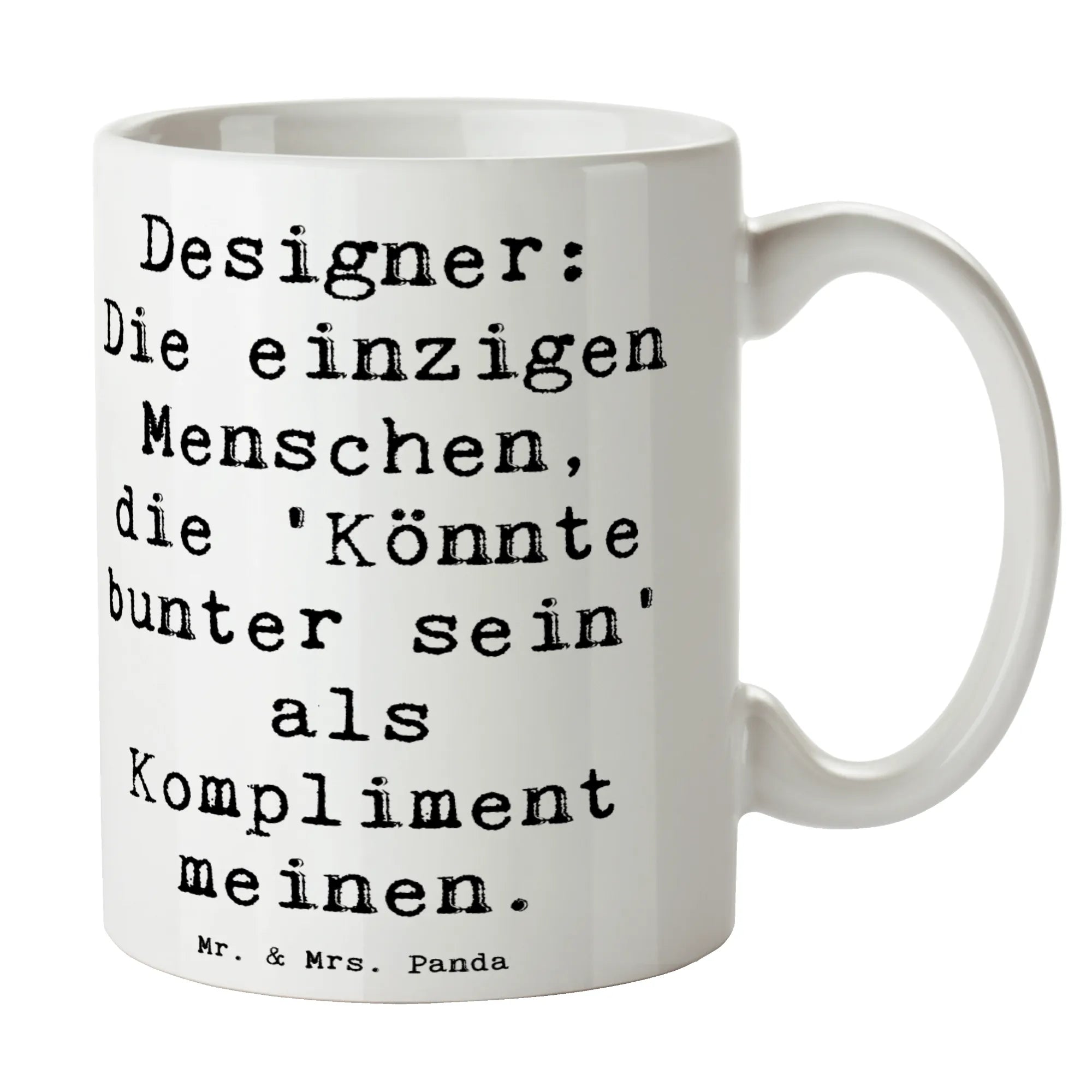 Mug Saying Designer: Die einzigen Menschen, die 'Könnte bunter sein' als Kompliment meinen. Geschenktasse, Bürotasse, Porzellantasse, Tasse, Keramiktasse, Tasse mit Motiven, Teetasse, Kaffeetasse, Tasse mit Zitaten, Beruf, Ausbildung, Jubiläum, Abschied, Rente, Kollege, Kollegin, Geschenk, Schenken, Arbeitskollege, Mitarbeiter, Firma, Danke, Dankeschön