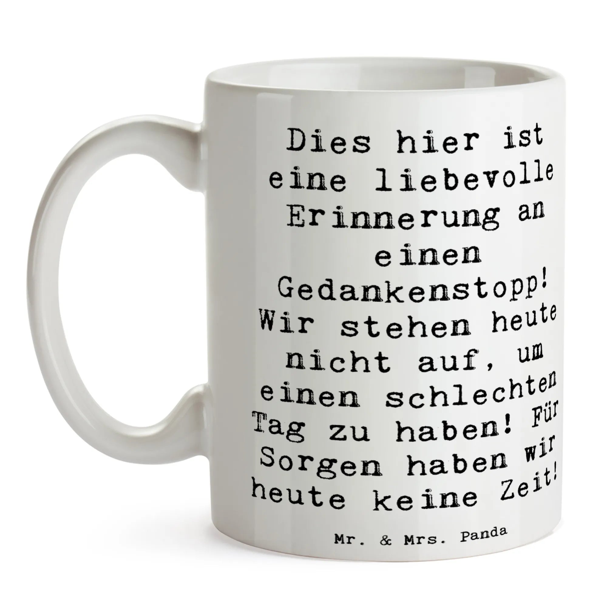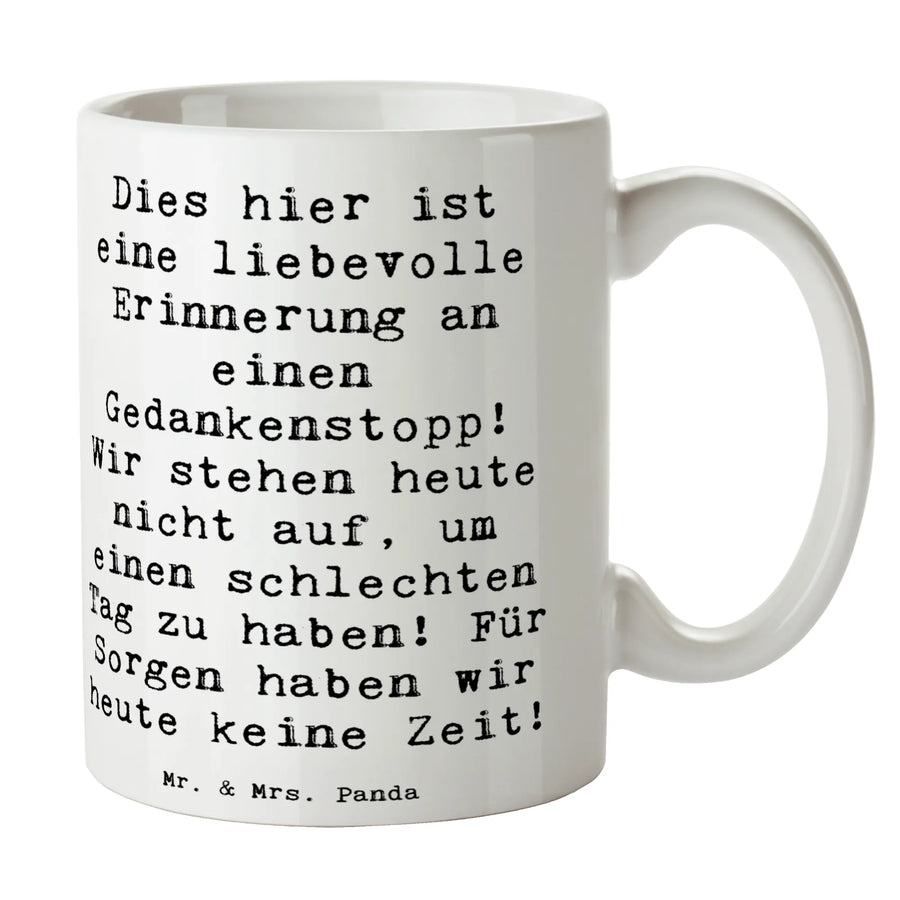Mug Saying Dies hier ist eine liebevolle Erinnerung an einen Gedankenstopp! Wir stehen heute nicht auf, um einen schlechten Tag zu haben! Für Sorgen haben wir heute keine Zeit! - White
