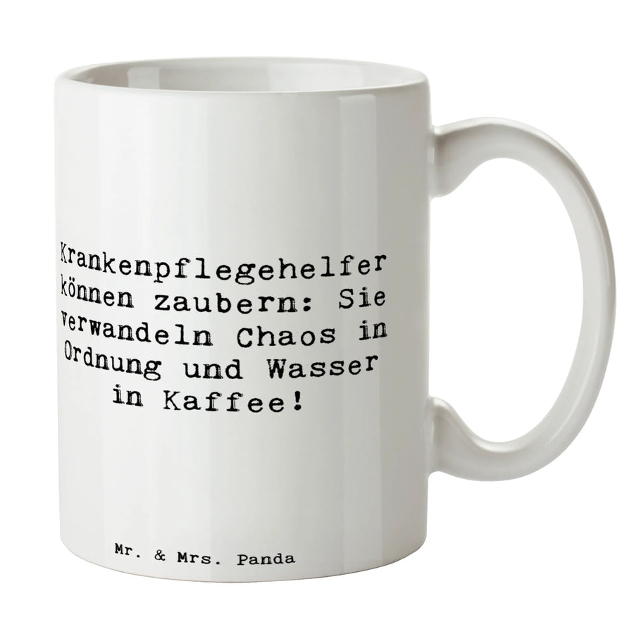 Mug Saying Krankenpflegehelfer können zaubern: Sie verwandeln Chaos in Ordnung und Wasser in Kaffee! - White