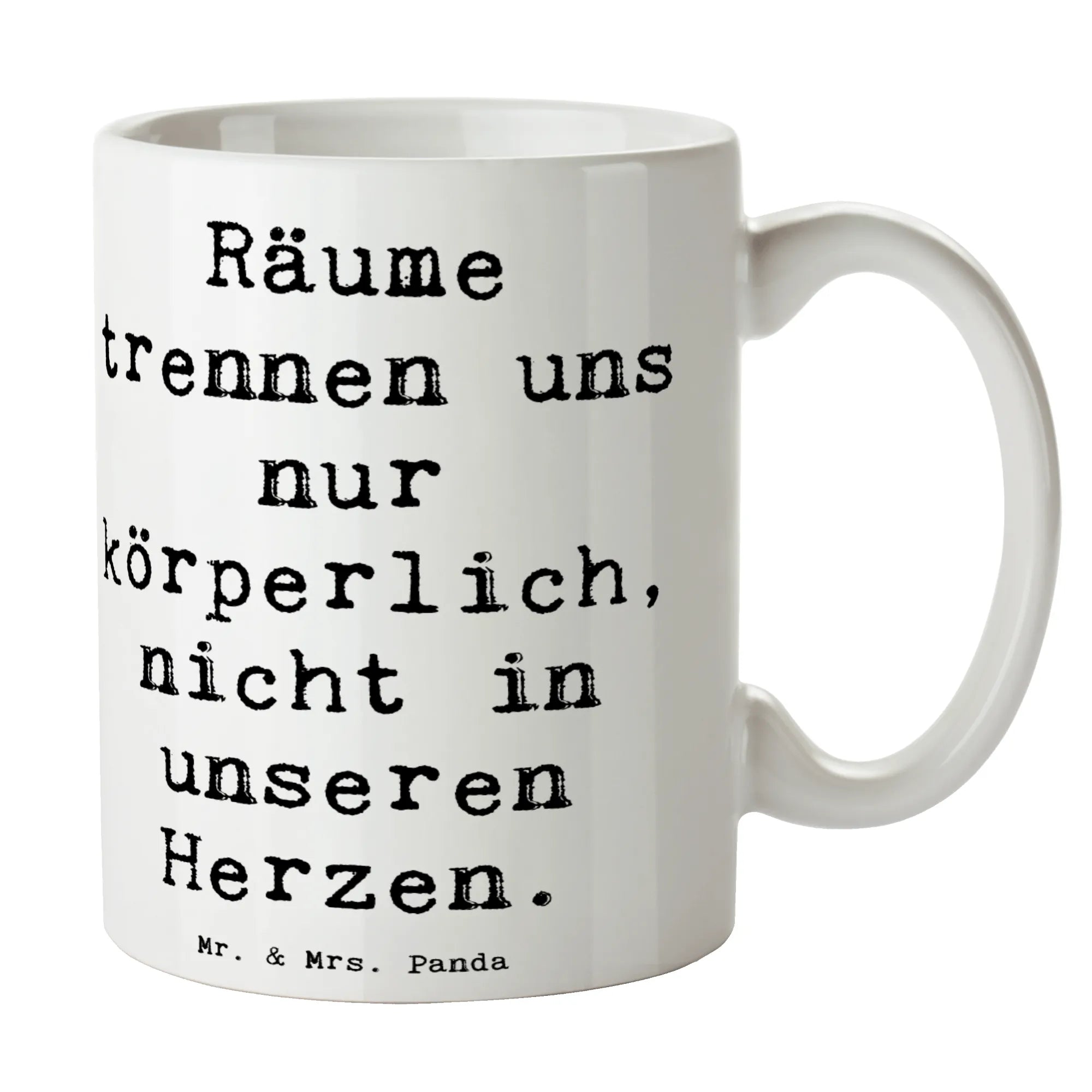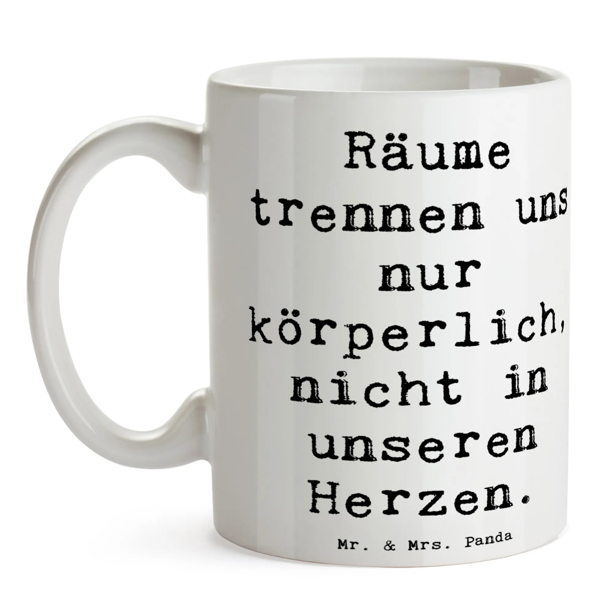 Mug Saying Räume trennen uns nur körperlich, nicht in unseren Herzen. - White