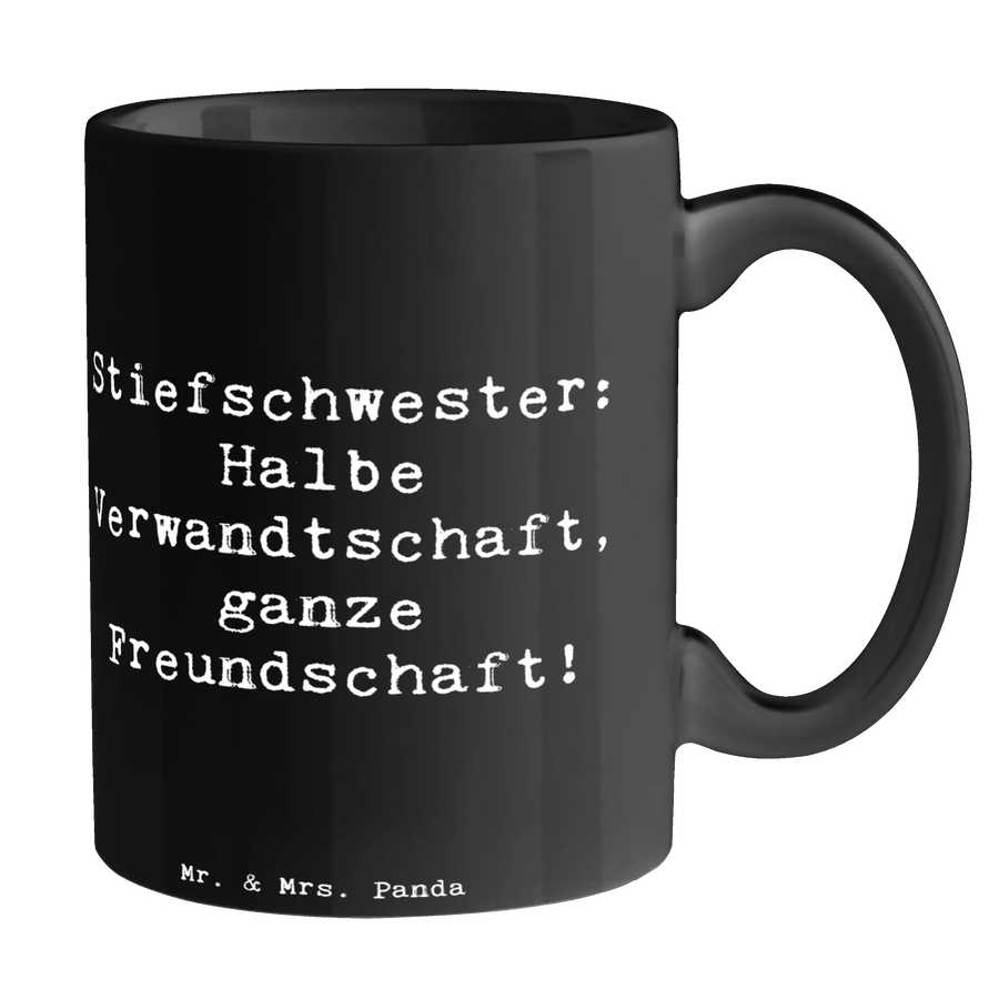 Mug Saying Stiefschwester: Halbe Verwandtschaft, ganze Freundschaft! - Black