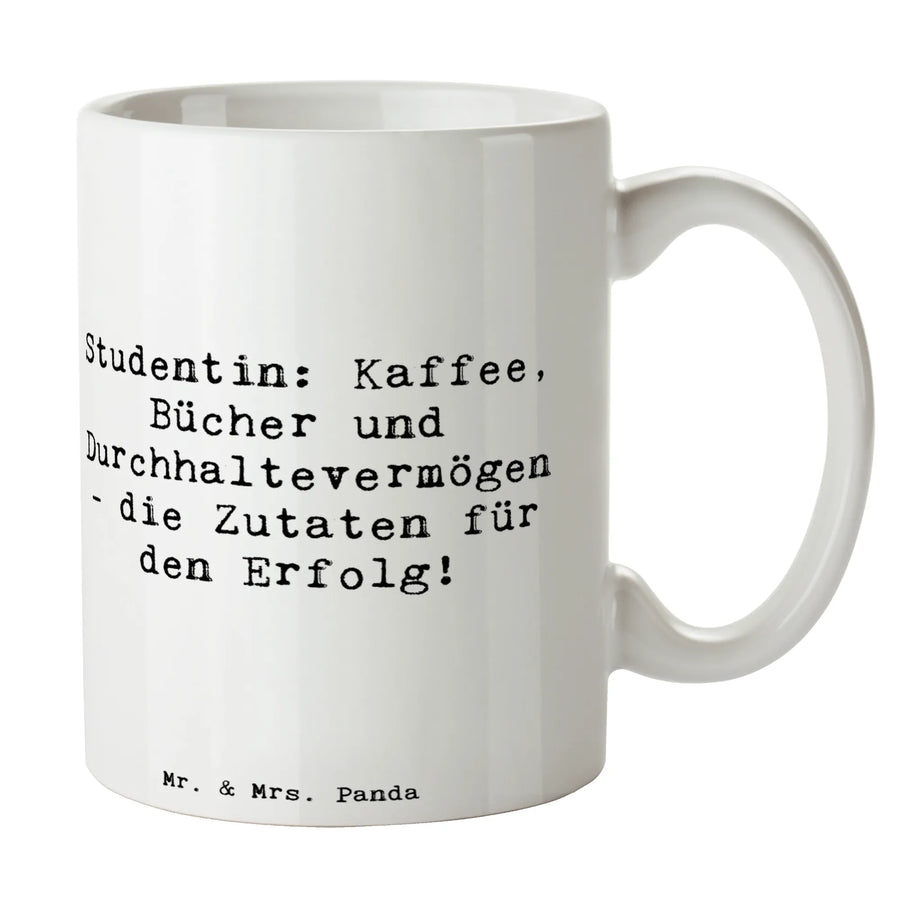 Mug Saying Studentin: Kaffee, Bücher und Durchhaltevermögen - die Zutaten für den Erfolg! - White