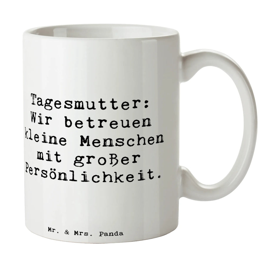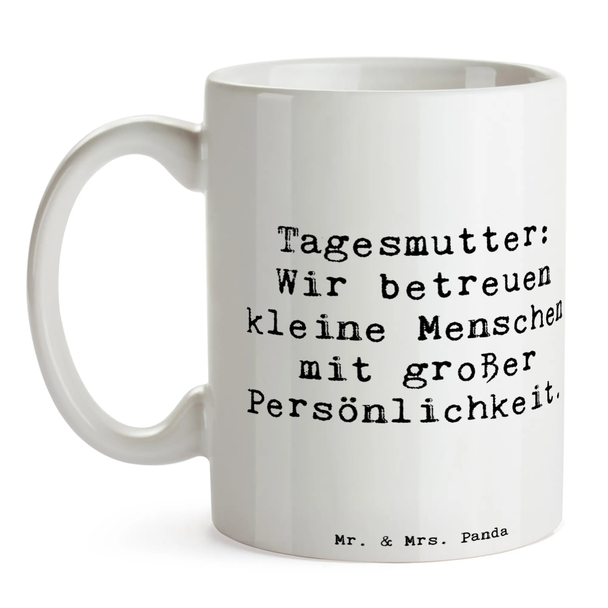 Mug Saying Tagesmutter: Wir betreuen kleine Menschen mit großer Persönlichkeit. - White