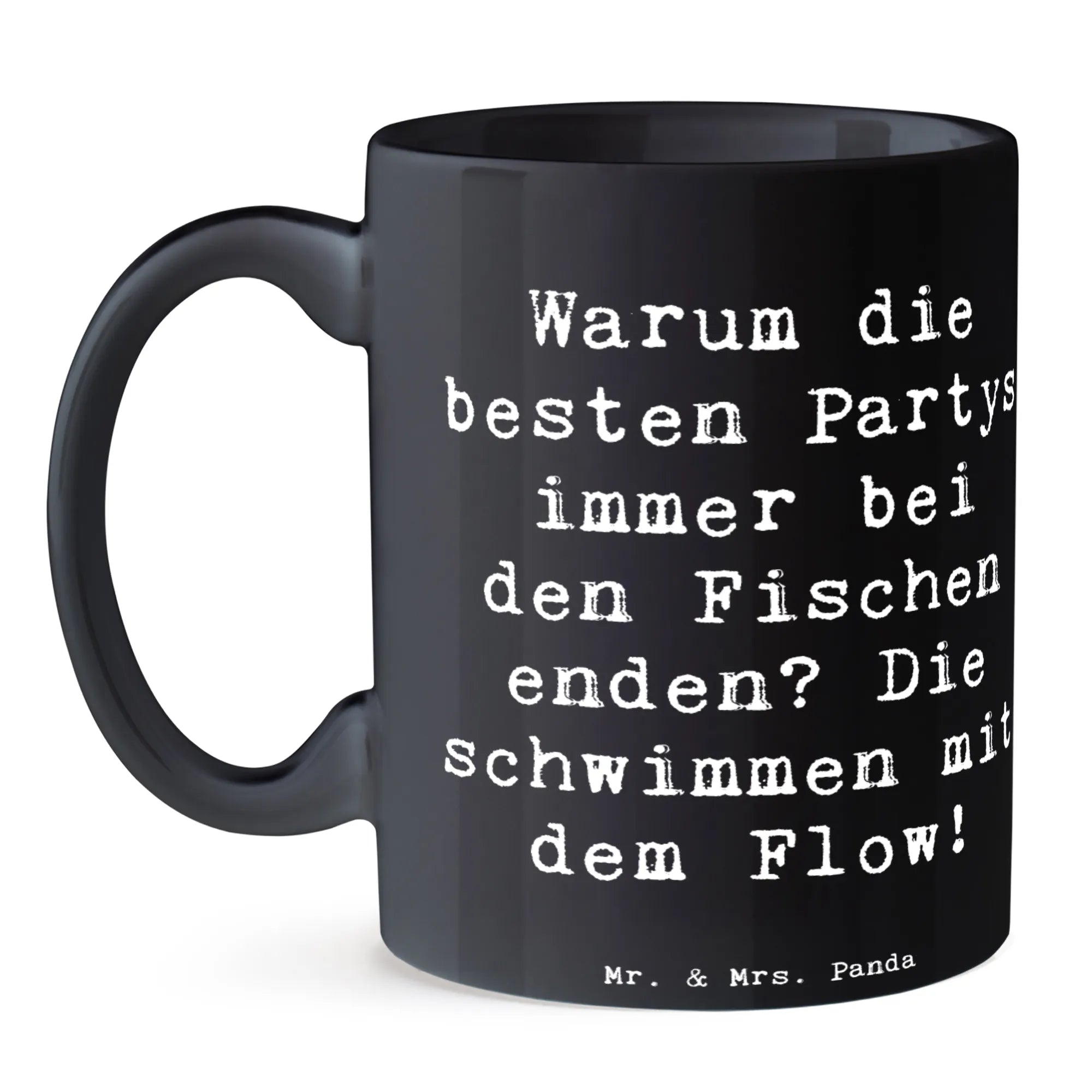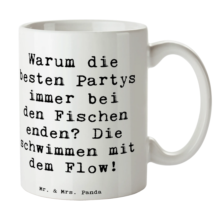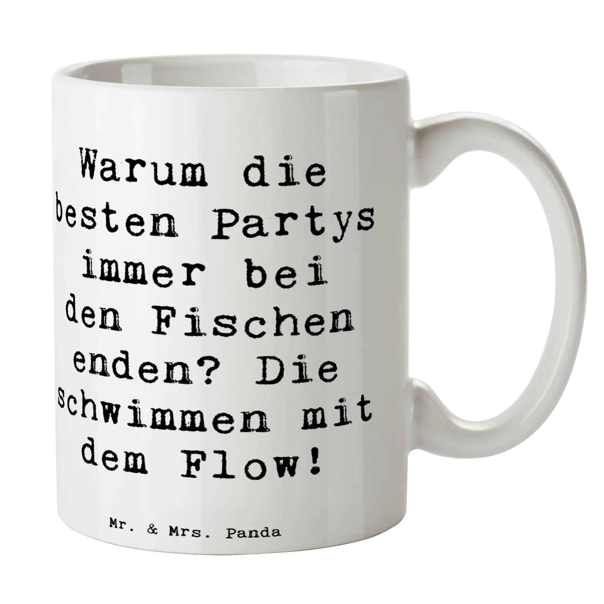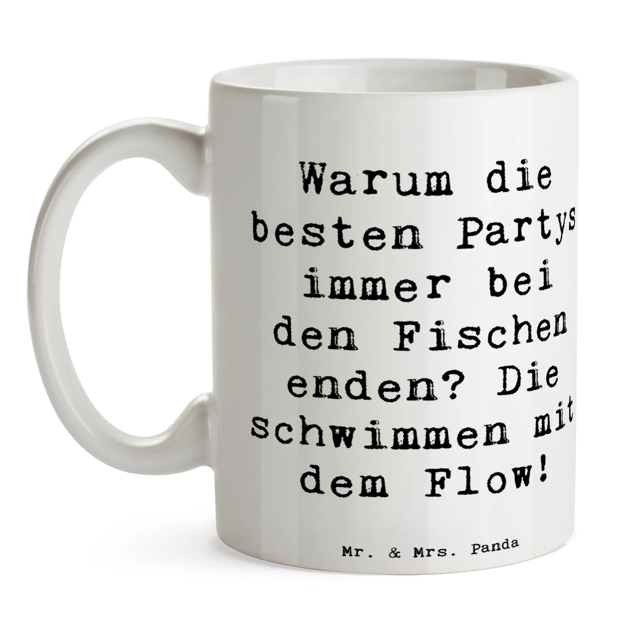 Mug Saying Warum die besten Partys immer bei den Fischen enden? Die schwimmen mit dem Flow! - White