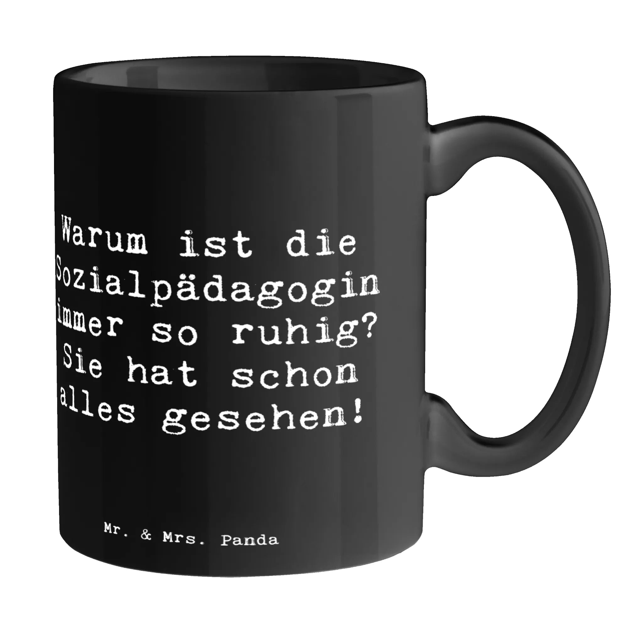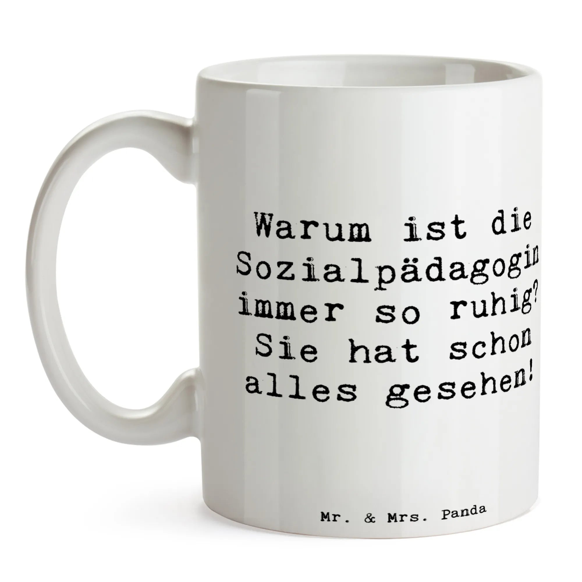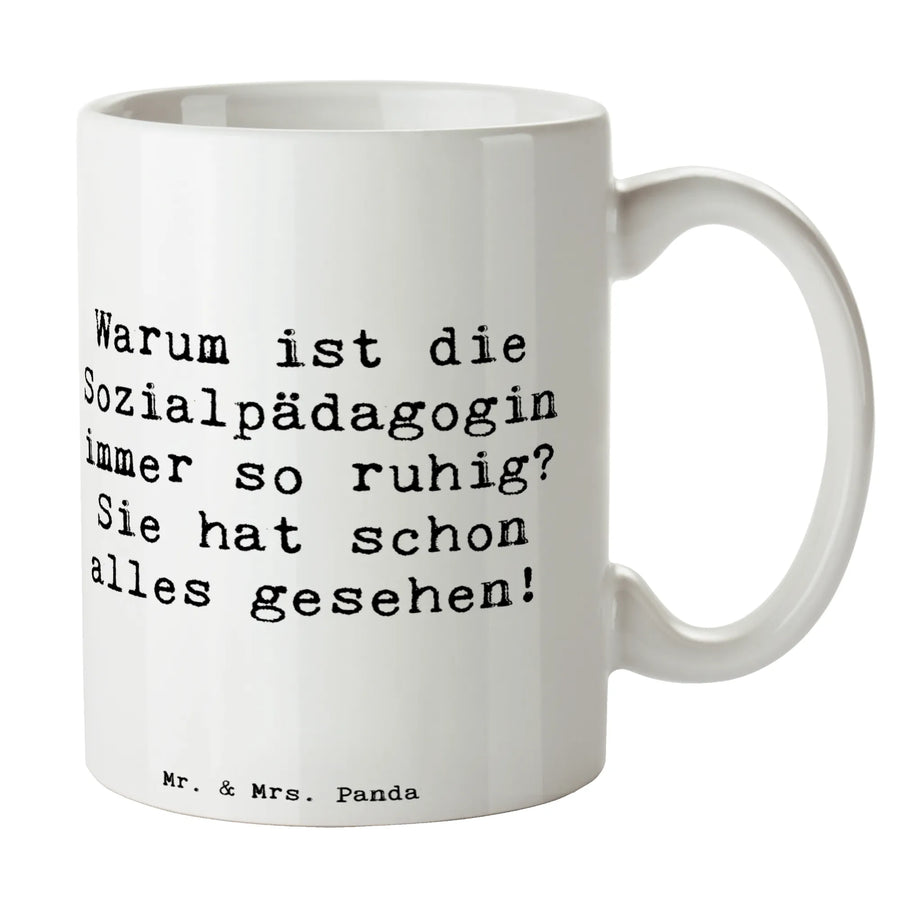 Mug Saying Warum ist die Sozialpädagogin immer so ruhig? Sie hat schon alles gesehen! - White