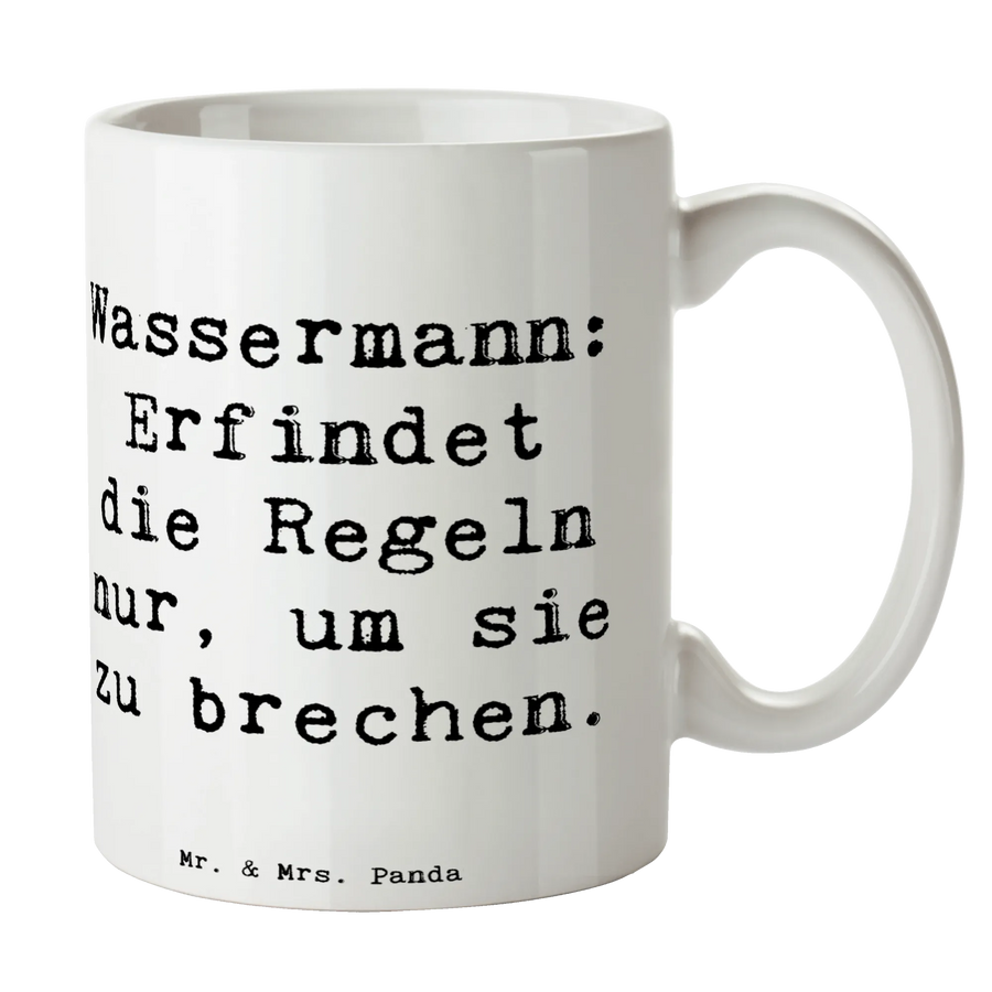 Mug Saying Wassermann: Erfindet die Regeln nur, um sie zu brechen. - White