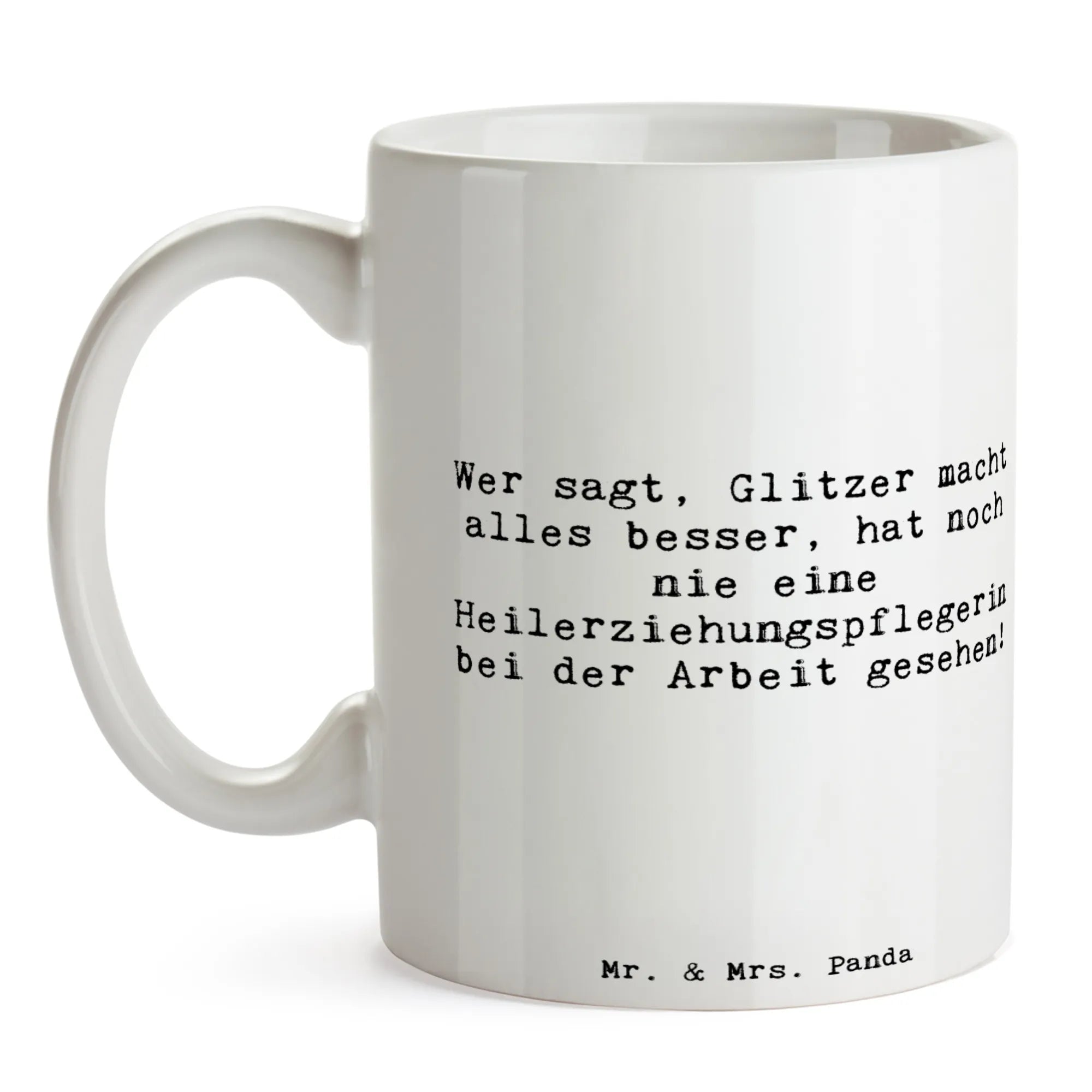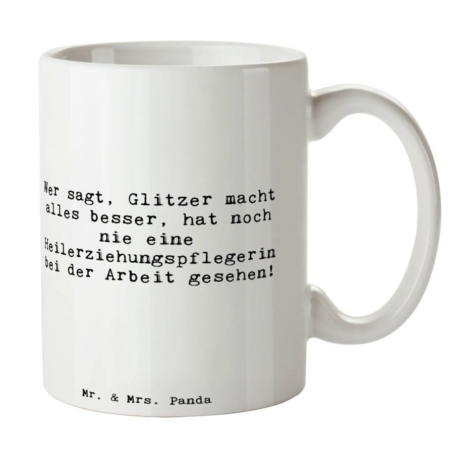 Suchst Du das perfekte Geschenk für eine Heilerziehungspflegerin? Unsere liebevoll gestaltete Tasse aus der Berufe-Kollektion von Mr. & Mrs. Panda verbindet Humor, Anerkennung und Alltagstauglichkeit. Auf der Tasse steht der freche Spruch: „Wer sagt, Glitzer macht alles besser, hat noch nie eine Heilerziehungspflegerin bei der Arbeit gesehen!" – ein Satz, der Danke sagt und ein Schmunzeln schenkt. ☕️