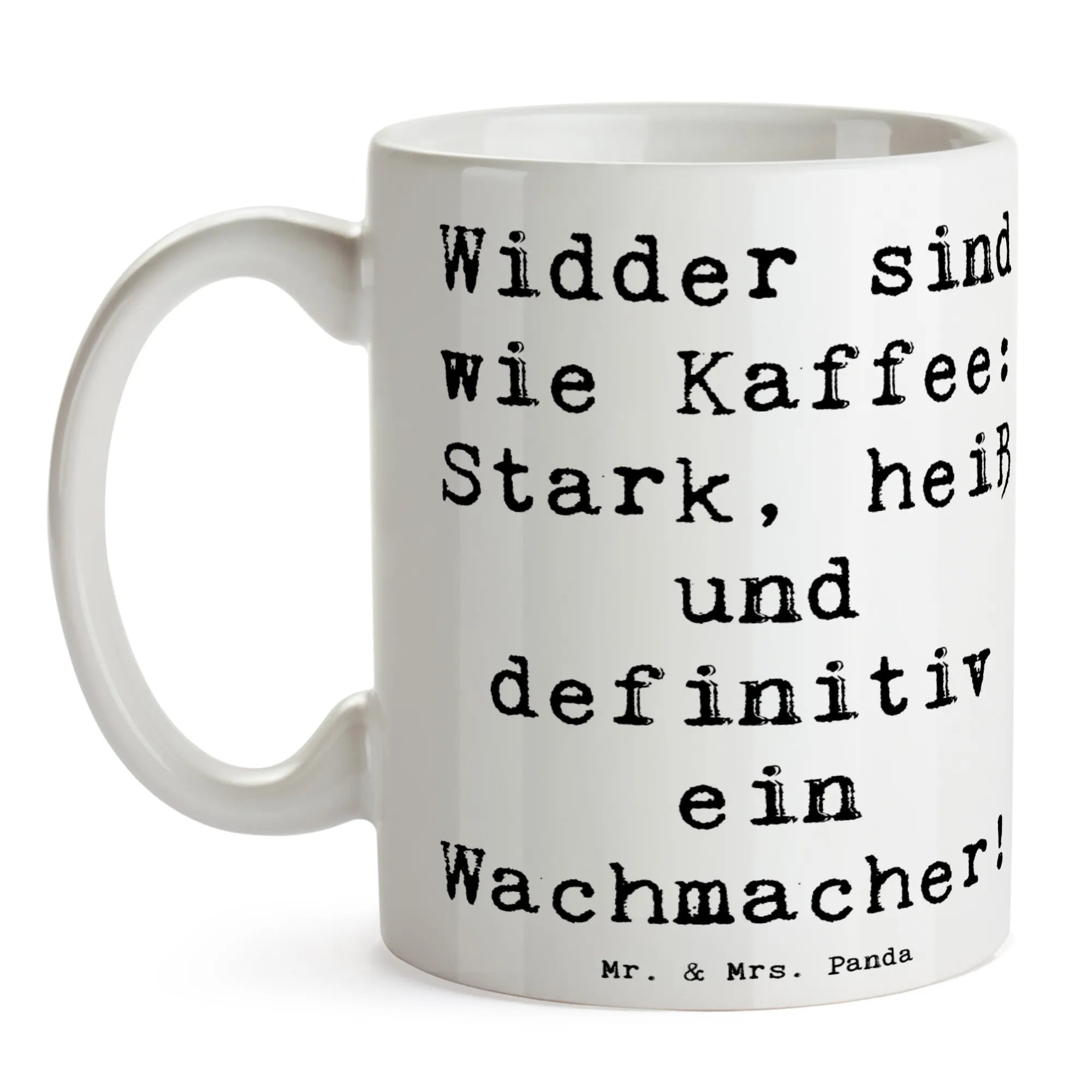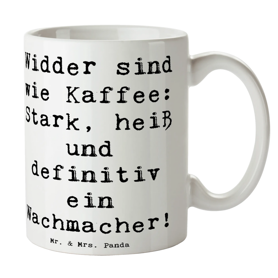 Du bist auf der Suche nach dem perfekten Geschenk für einen Widder oder für dich selbst? Die wundervolle Kaffeetasse "Widder" von Mr. & Mrs. Panda ist genau das Richtige! Diese hochwertige Keramiktasse bringt nicht nur deinem Kaffee oder Tee die nötige Wärme, sondern verzaubert auch mit ihrem lustigen Spruch: "Widder sind wie Kaffee: Stark, heiß und definitiv ein Wachmacher!"