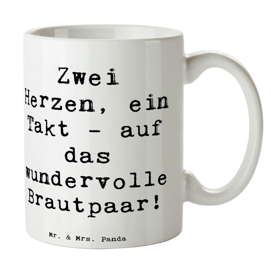 Mug Saying Zwei Herzen, ein Takt - auf das wundervolle Brautpaar! - White