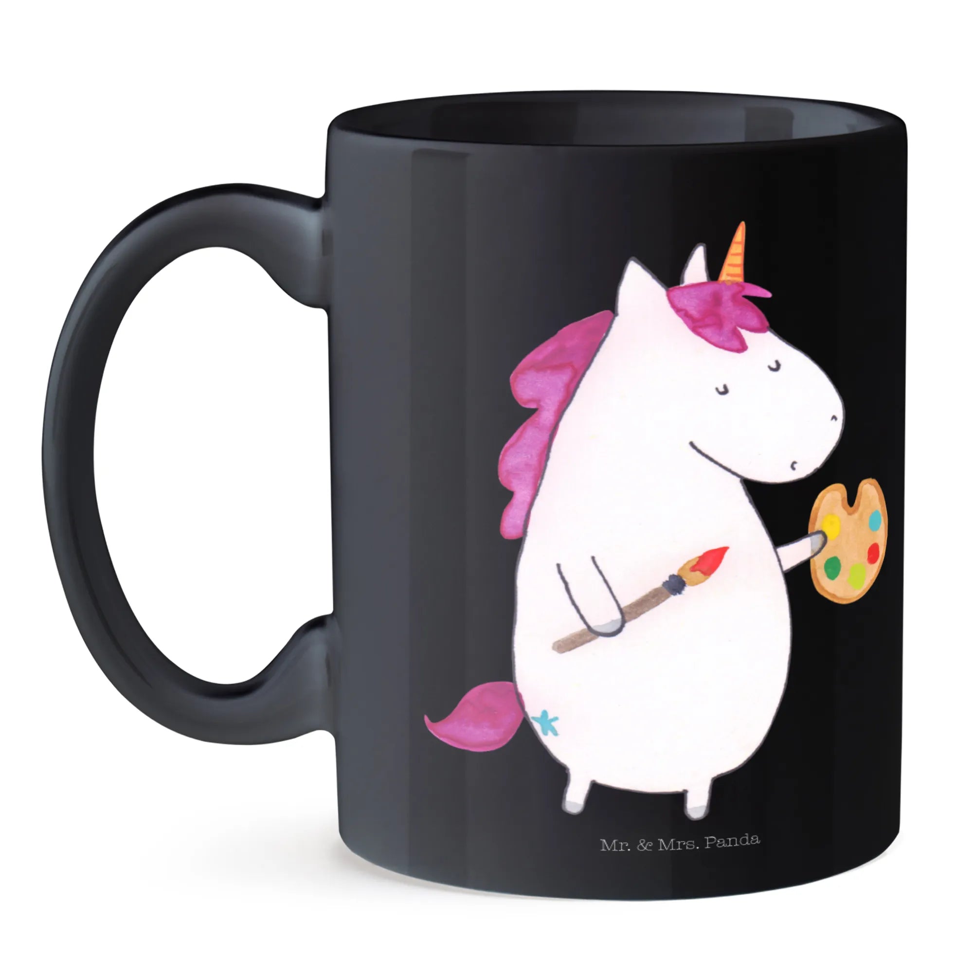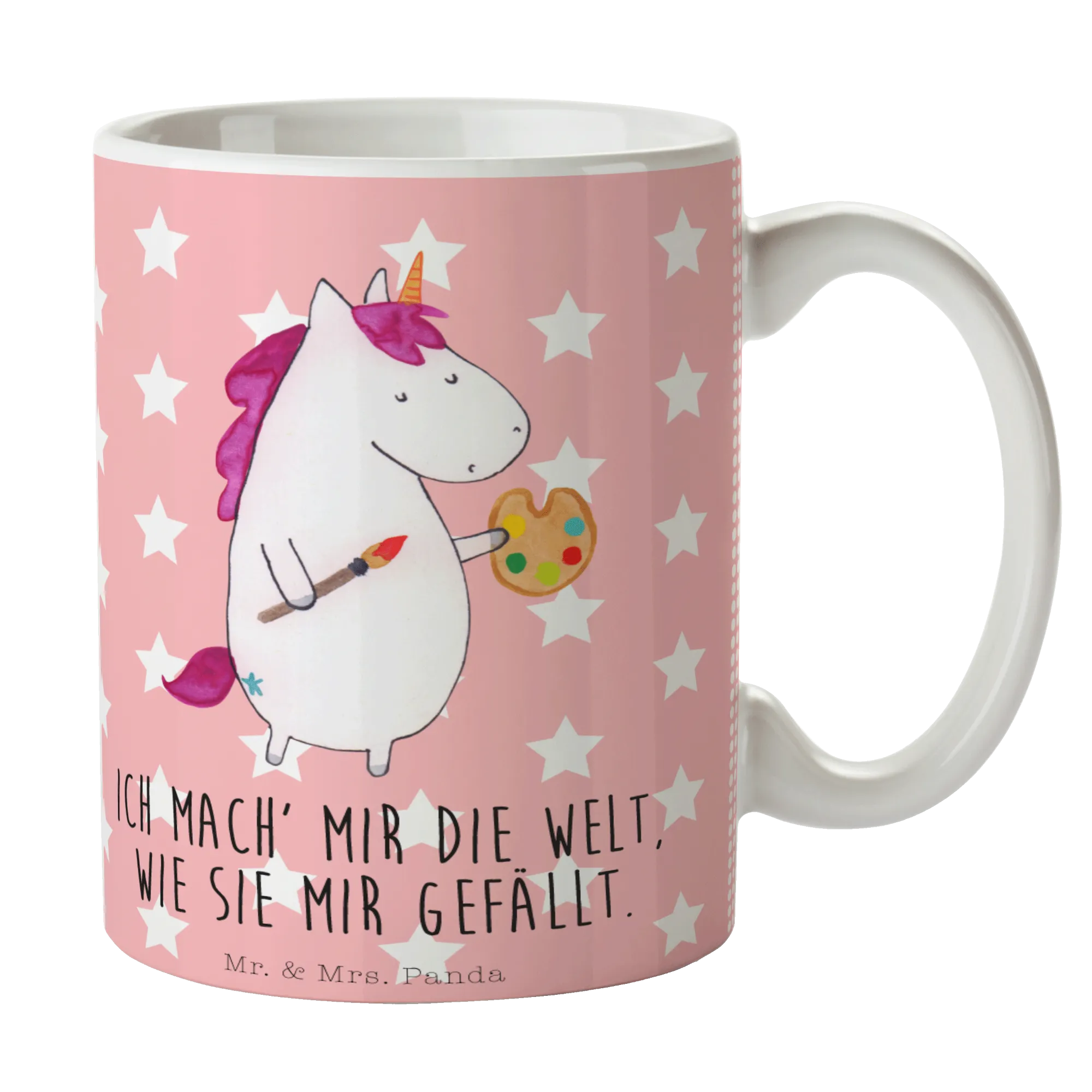 Introducing the enchanting Mr. & Mrs. Panda Unicorn Artist Mug! This delightful ceramic mug is not just a vessel for your favorite coffee or tea—it’s a gateway to creativity and inspiration. Perfect for artists, dreamers, and anyone who believes in adding a splash of magic to their everyday life, this mug features a beautifully illustrated unicorn joyfully painting its world with vibrant colors. "Ich mach' mir die Welt, wie sie mir gefällt" says it all, capturing the essence of creativity and imagination that we all aspire to embrace.