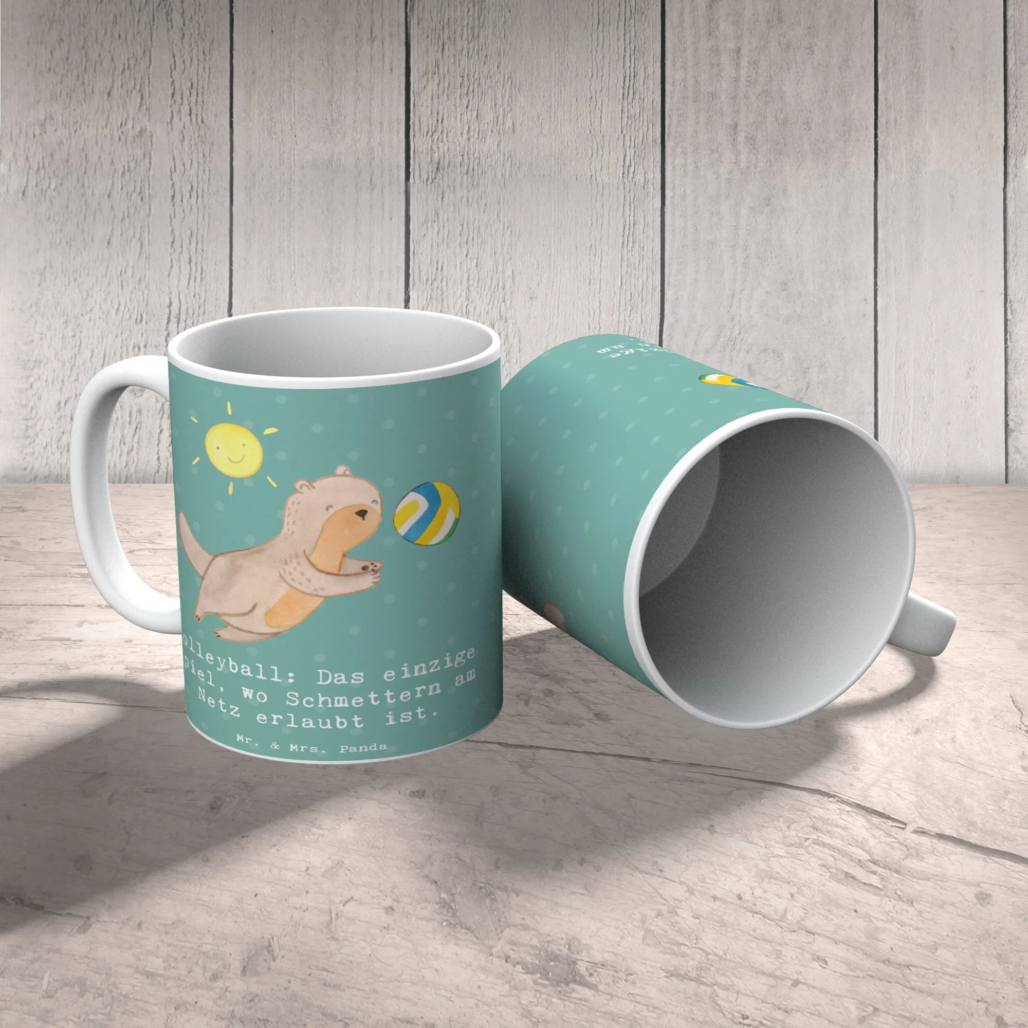 Perfekt für alle Volleyball-Fans! Unsere Tasse Volleyball aus der Sportarten-Kollektion von Mr. & Mrs. Panda ist ein liebevoll gestaltetes Geschenk für Spieler, Trainer und Teamfans. Der charmante Spruch „Volleyball: Das einzige Spiel, wo Schmettern am Netz erlaubt ist.“ zaubert garantiert ein Lächeln in den Morgen und sorgt für Motivation bei der ersten Tasse Kaffee oder Tee. 🏐
