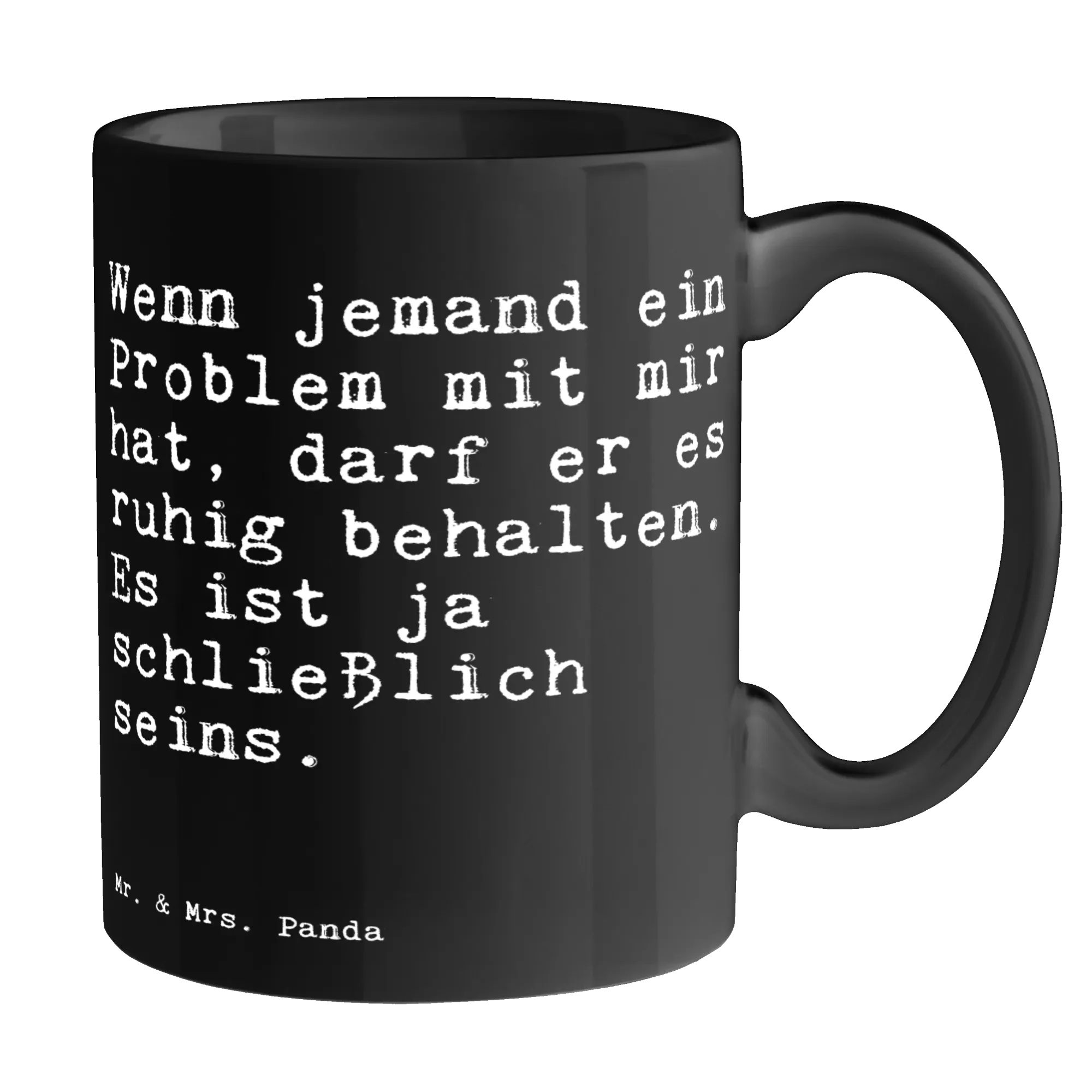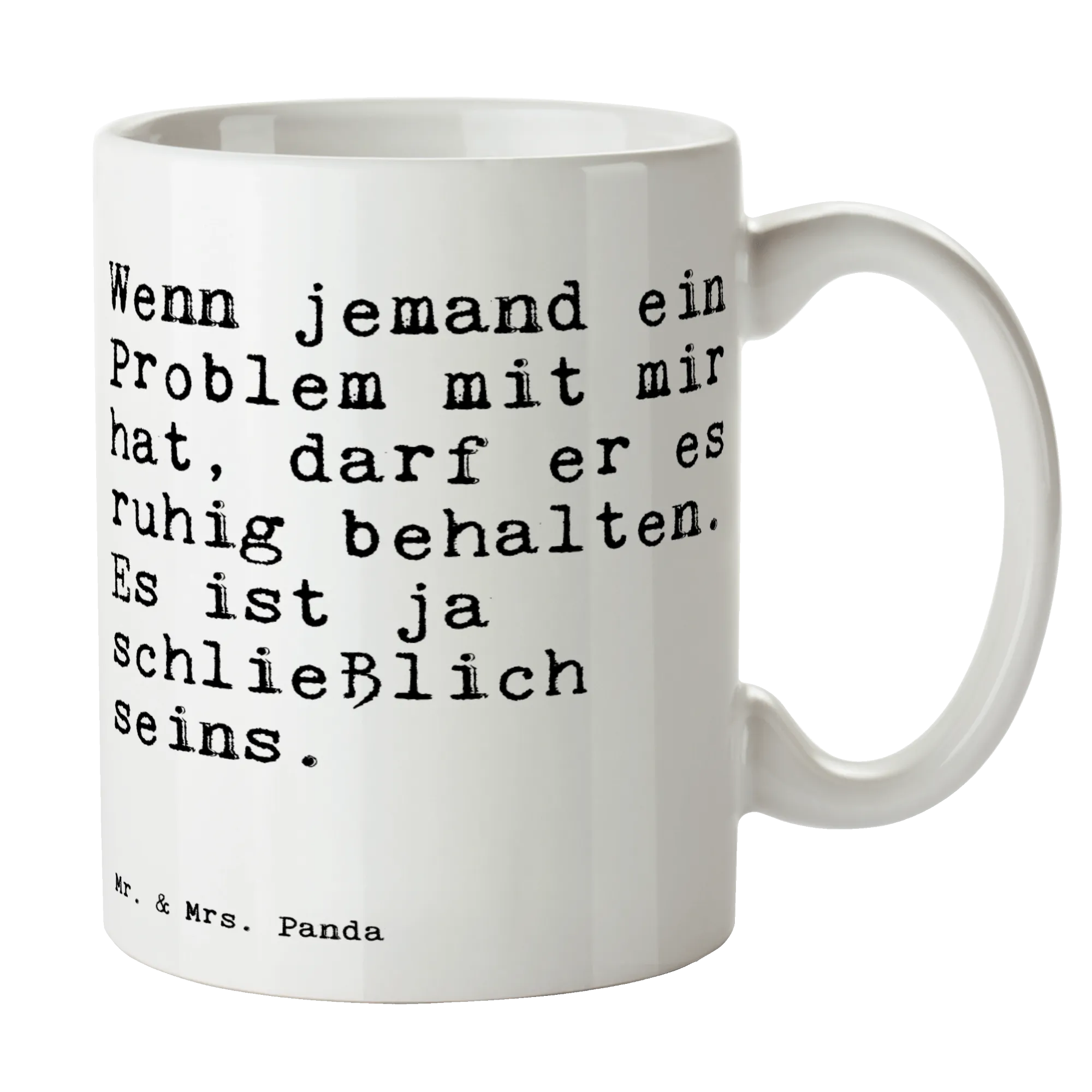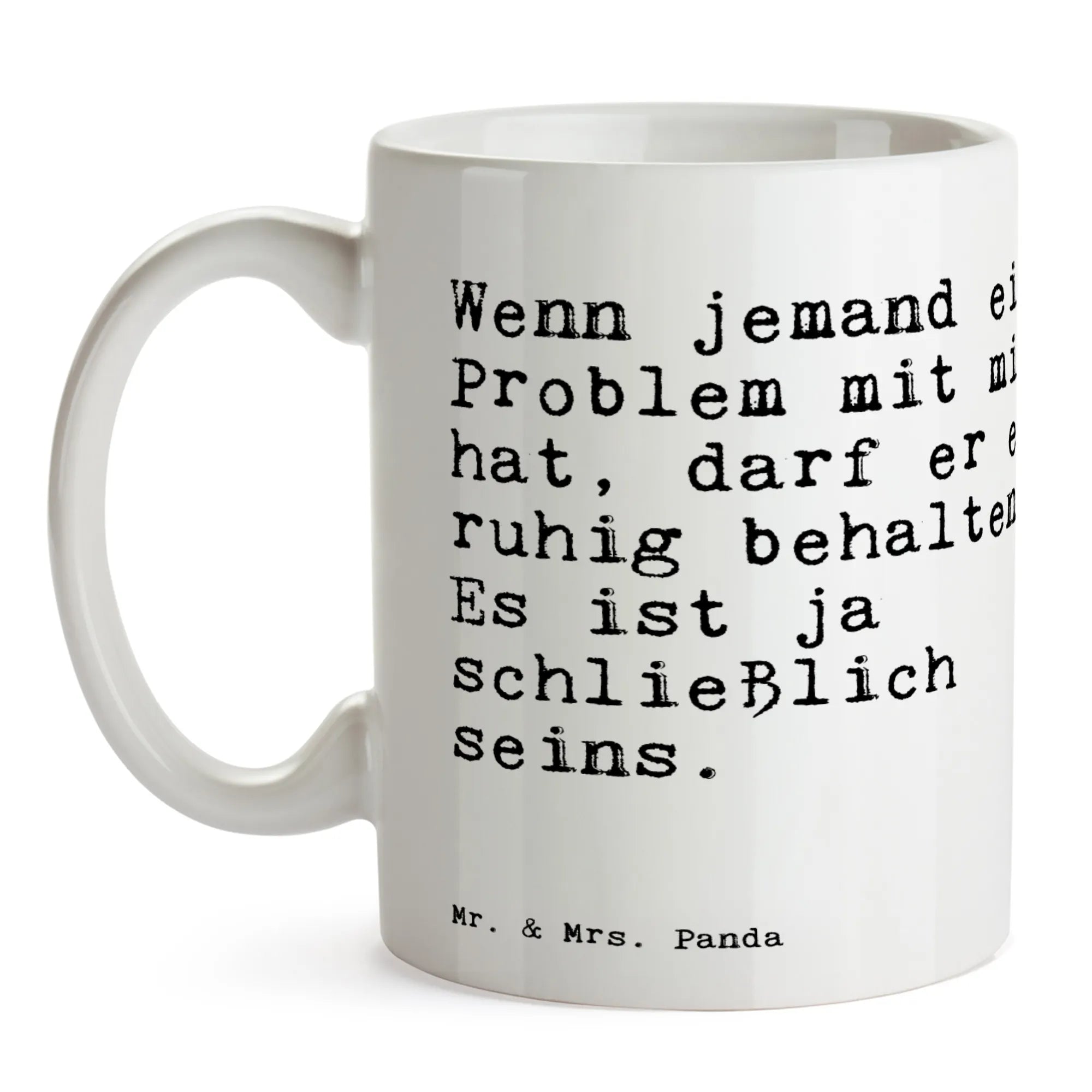Suchst du ein Geschenk mit Persönlichkeit? Unsere Tasse mit dem frechen Spruch „Wenn jemand ein Problem mit mir hat, darf er es ruhig behalten. Es ist ja schließlich seins.“ aus der Spruchreif-Kollektion von Mr. & Mrs. Panda ist genau das richtige. Diese Kaffeetasse verbindet Humor mit Alltagstauglichkeit und ist ein tolles Geschenk für Freunde, Kollegen oder dich selbst.