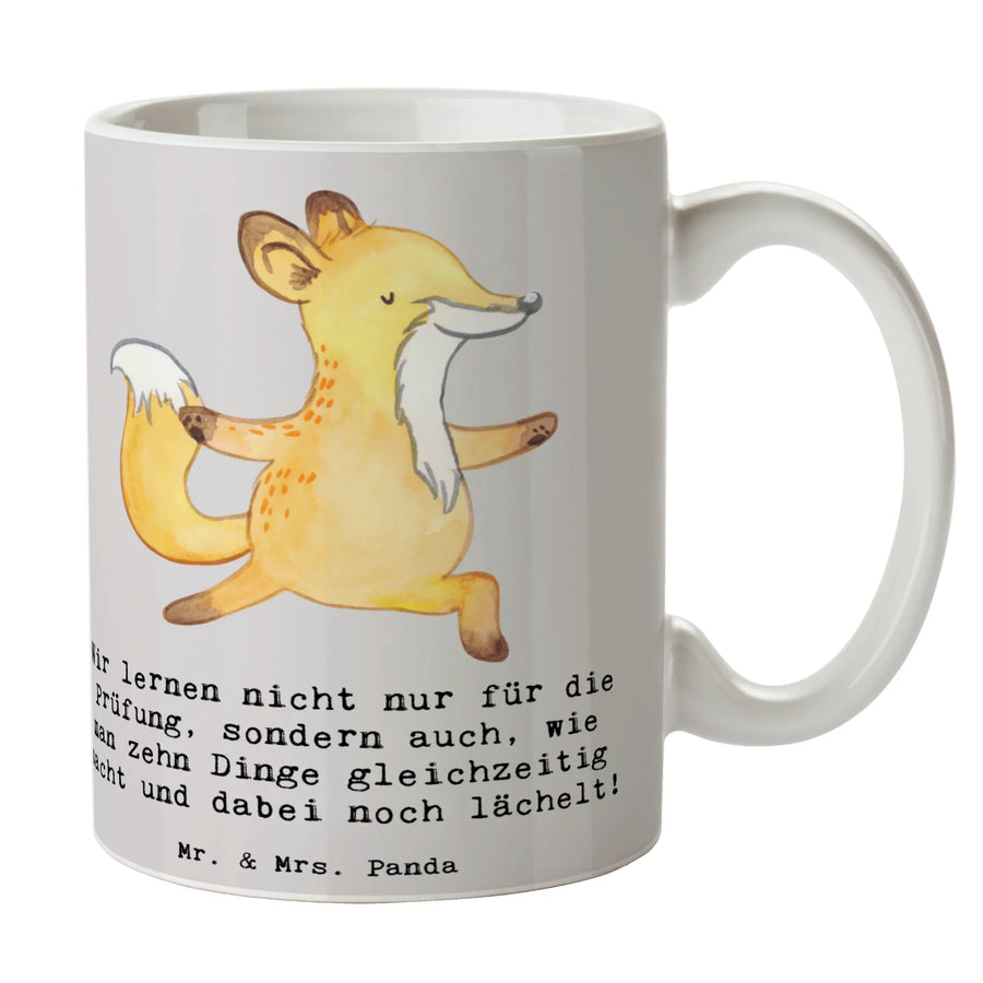 Mug Wir lernen nicht nur für die Prüfung, sondern auch, wie man zehn Dinge gleichzeitig macht und dabei noch lächelt! - Grey Pastel