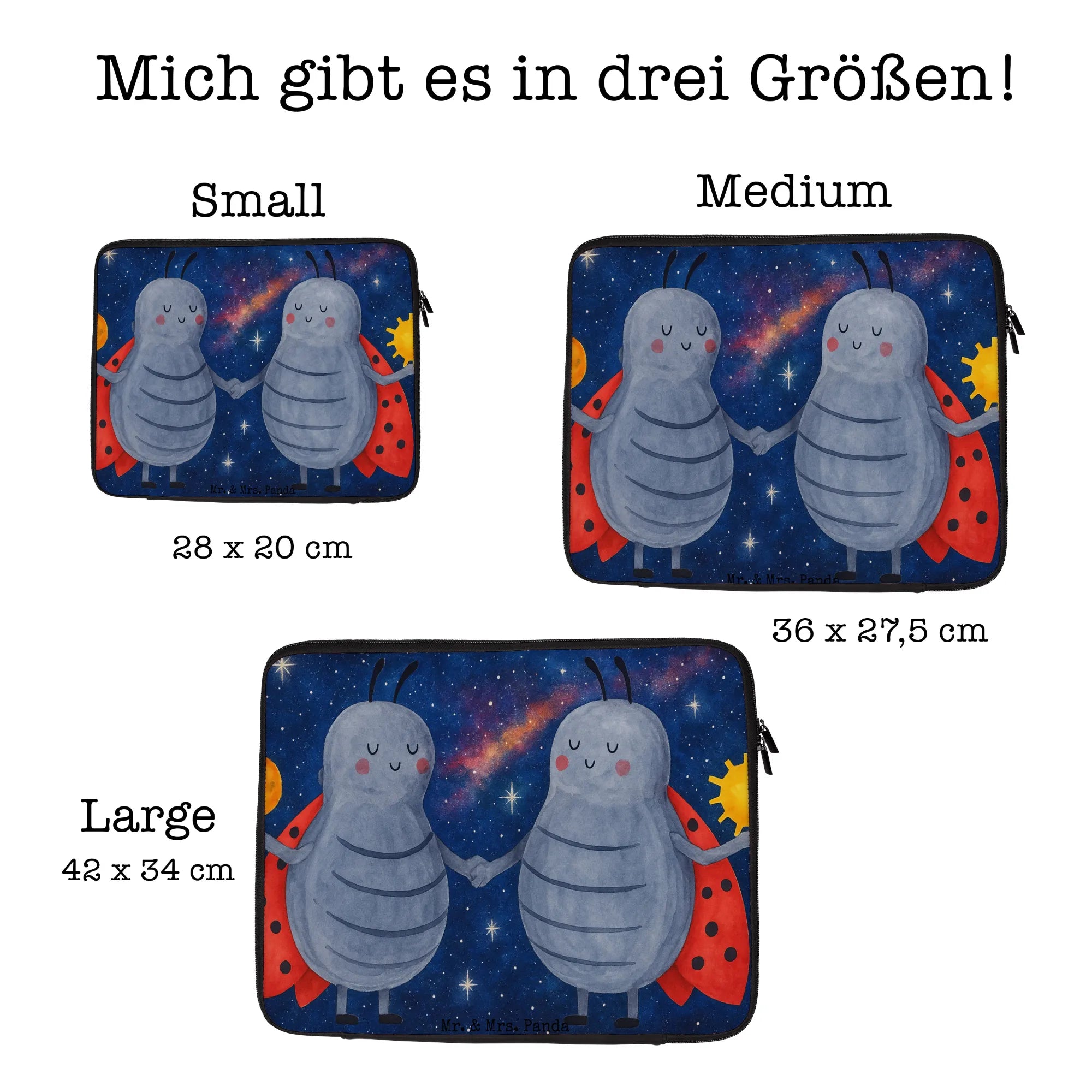 Bereit für die nächste Reise? Mit der Notebook Tasche von Mr. & Mrs. Panda bist du bestens ausgestattet! Ihre Maße von 420 mm x 320 mm x 30 mm bieten genau den richtigen Platz für dein Laptop oder Notebook. Gefertigt aus wasserabweisendem Neopren, bleibt dein Gerät stets vor Schäden wie Kratzern oder Staub geschützt. Darüber hinaus sorgt der robuste Reißverschluss dafür, dass alles sicher verstaut ist. Die Front- und Rückseite zeigen fröhliche Motive und Sprüche von Mr. & Mrs. Panda, die dich bei jedem Gebrauch erfreuen werden. Diese Tasche ist nicht nur eine praktische Lösung, sondern auch ein stylisches Accessoire, das deinen individuellen Stil unterstreicht. Leicht zu reinigen und ideal für den täglichen Gebrauch, ist sie in verschiedenen Größen verfügbar und perfekt für kreative Seelen auf der Suche nach einem praktischen Begleiter!